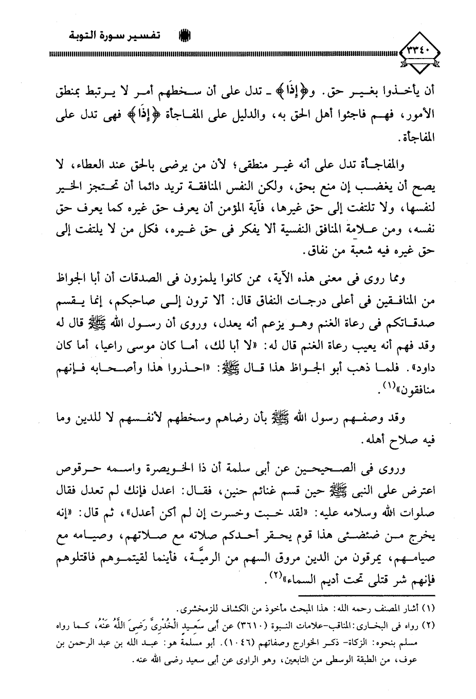 (¬2) رواه في البخاري: المناقب - علامات النبوة (3610) عن أبي سَعِيدِ الْخُدْرِيَّ رَضِي اللَّهُ عَنْهُ، كما رواه مسلم بنحوه: الزكاة - ذكر الخوارج وصفاتهم (1046).