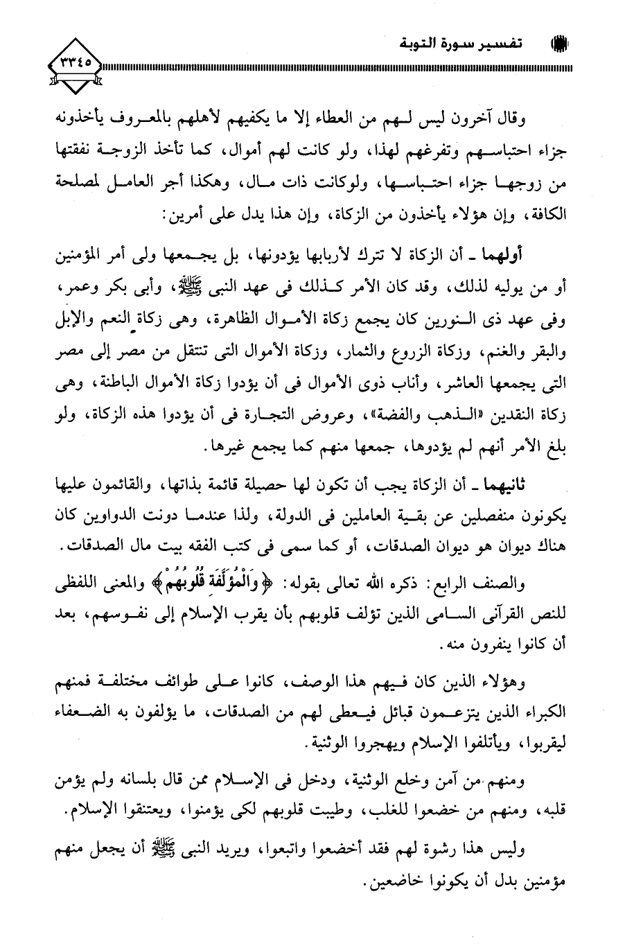 وهؤلاء الذين كان فيهم هذا الوصف، كانوا على طوائف مختلفة فمنهم الكبراء الذين يتزعمون قبائل فيعطى لهم من الصدقات، ما يؤلفون به الضعفاء ليقربوا، ويأتلفوا الإسلام ويهجروا الوثنية.