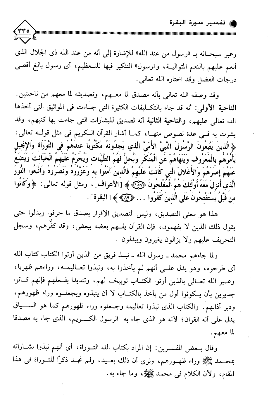 (الَّذِينَ يَتَّبِعُونَ الرَّسُولَ النَّبِيَّ الْأُمِّيَّ الَّذِي يَجِدُونَهُ مَكْتُوبًا عِنْدَهُمْ فِي التَّوْرَاةِ وَالْإِنْجِيلِ يَأْمُرُهُمْ بِالْمَعْرُوفِ وَيَنْهَاهُمْ عَنِ الْمُنْكَرِ وَيُحِلُّ لَهُمُ الطَّيِّبَاتِ وَيُحَرِّمُ عَلَيْهِمُ الْخَبَائِثَ وَيَضَعُ عَنْهُمْ إِصْرَهُمْ وَالْأَغْلَالَ الَّتِي كَانَتْ عَلَيْهِمْ فَالَّذِينَ آمَنُوا بِهِ وَعَزَّرُوهُ وَنَصَرُوهُ وَاتَّبَعُوا النُّورَ الَّذِي أُنْزِلَ مَعَهُ أُولَئِكَ هُمُ الْمُفْلِحُونَ (157)،