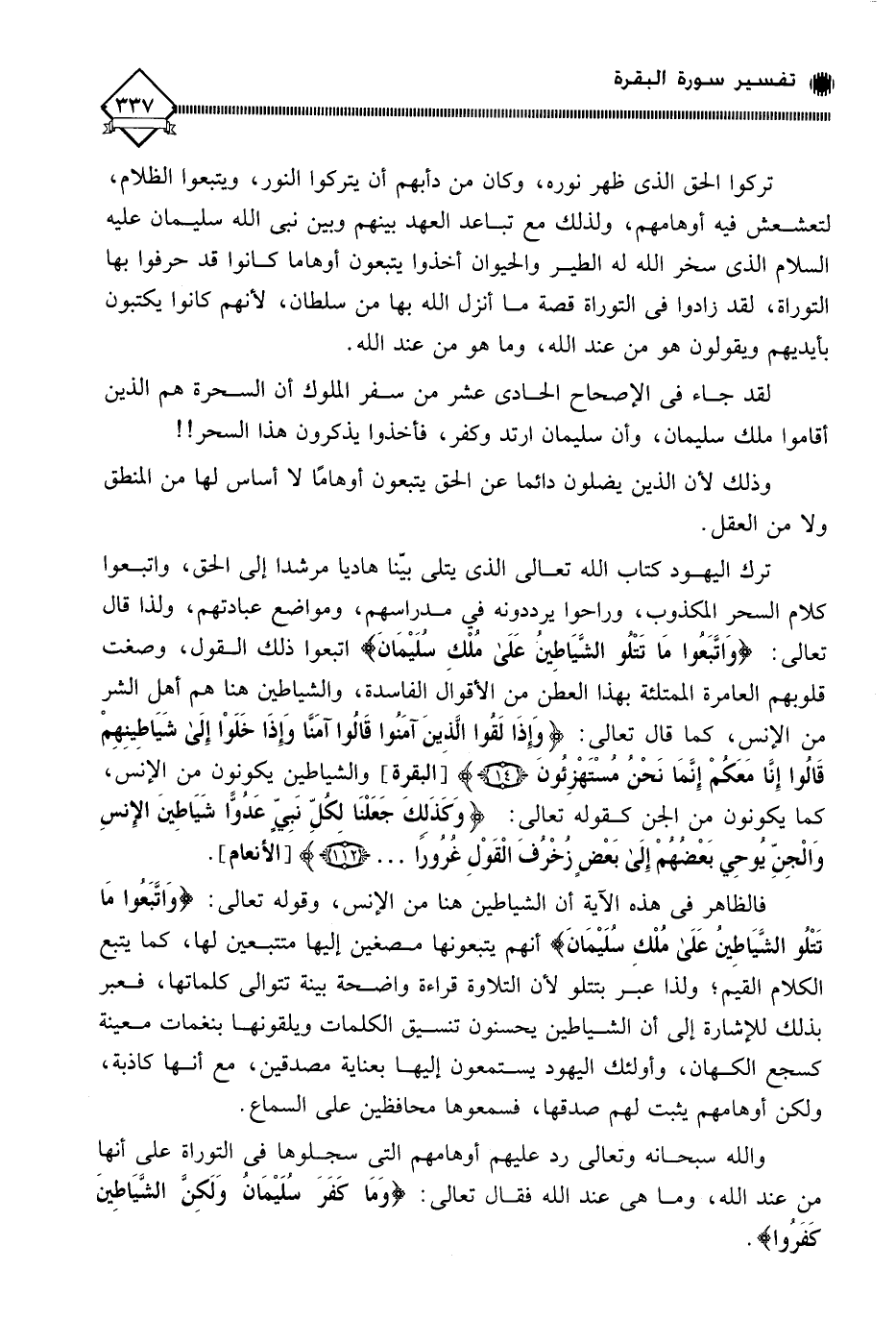 تركوا الحق الذي ظهر نوره، وكان من دأبهم أن يتركوا النور، ويتبعوا الظلام، لتعشعش فيه أوهامهم، ولذلك مع تباعد العهد بينهم وبين نبي الله سليمان عليه السلام الذي سخر الله له الطير والحيوان أخذوا يتبعون أوهاما كانوا قد حرفوا بها التوراة، لقد زادوا في التوراة قصة ما أنزل الله بها من سلطان، لأنهم كانوا يكتبون بأيديهم ويقولون هو من عند الله، وما هو من عند الله.