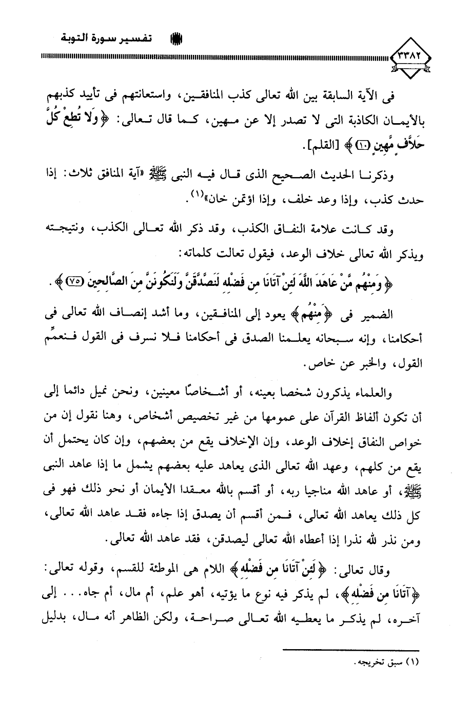 والعلماء يذكرون شخصا بعينه، أو أشخاصًا معينين، ونحن نميل دائما إلى أن تكون ألفاظ القرآن على عمومها من غير تخصيص أشخاص، وهنا نقول إن من خواص النفاق إخلاف الوعد، وإن الإخلاف يقع من بعضهم، وإن كان يحتمل أن يقع من كلهم، وعهد الله تعالى الذي يعاهد عليه بعضهم يشمل ما إذا عاهد النبي - صلى الله عليه وسلم -، أو عاهد الله مناجيا ربه، أو أقسم بالله معقدا الأيمان أو نحو ذلك فهو في كل ذلك يعاهد الله تعالى، فمن أقسم أن يصدق إذا جاءه فقد عاهد الله تعالى، ومن نذر لله نذرا إذا أعطاه الله تعالى ليصدقن، فقد عاهد الله تعالى.