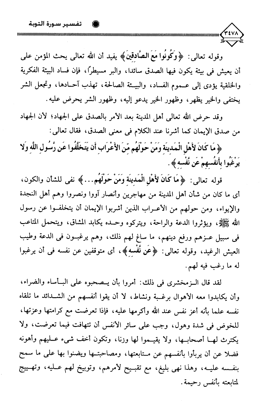 (مَا كَانَ لِأَهْلِ الْمَدِينَةِ وَمَنْ حَوْلَهُمْ مِنَ الْأَعْرَابِ أَنْ يَتَخَلَّفُوا عَنْ رَسُولِ اللَّهِ وَلَا يَرْغَبُوا بِأَنْفُسِهِمْ عَنْ نَفْسِهِ ... (120)