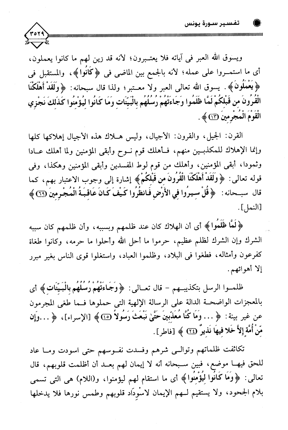 (وَلَقَدْ أَهْلَكْنَا الْقُرُونَ مِنْ قَبْلِكُمْ لَمَّا ظَلَمُوا وَجَاءَتْهُمْ رُسُلُهُمْ بِالْبَيِّنَاتِ وَمَا كَانُوا لِيُؤْمِنُوا كَذَلِكَ نَجْزِي الْقَوْمَ الْمُجْرِمِينَ (13)