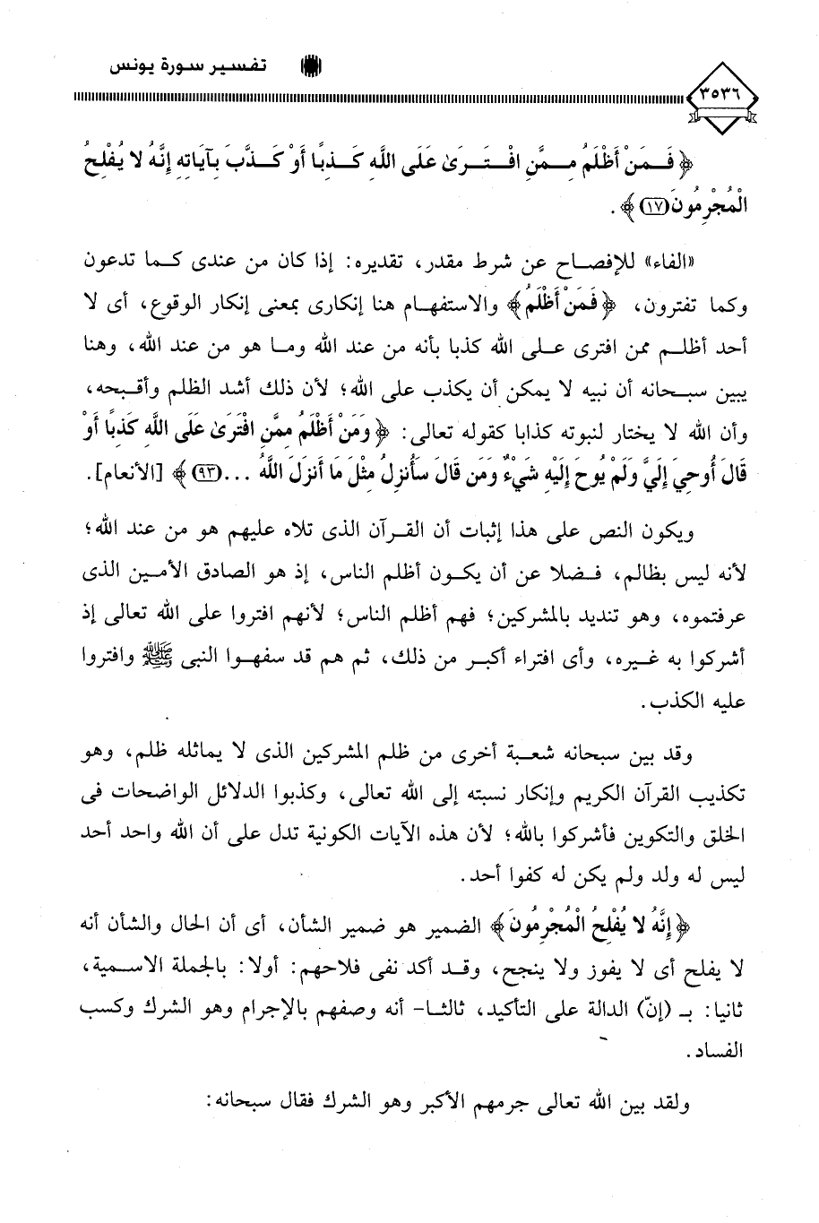 (فَمَنْ أَظْلَمُ مِمَّنِ افْتَرَى عَلَى اللَّهِ كَذِبًا أَوْ كَذَّبَ بِآيَاتِهِ إِنَّهُ لَا يُفْلِحُ الْمُجْرِمُونَ (17)