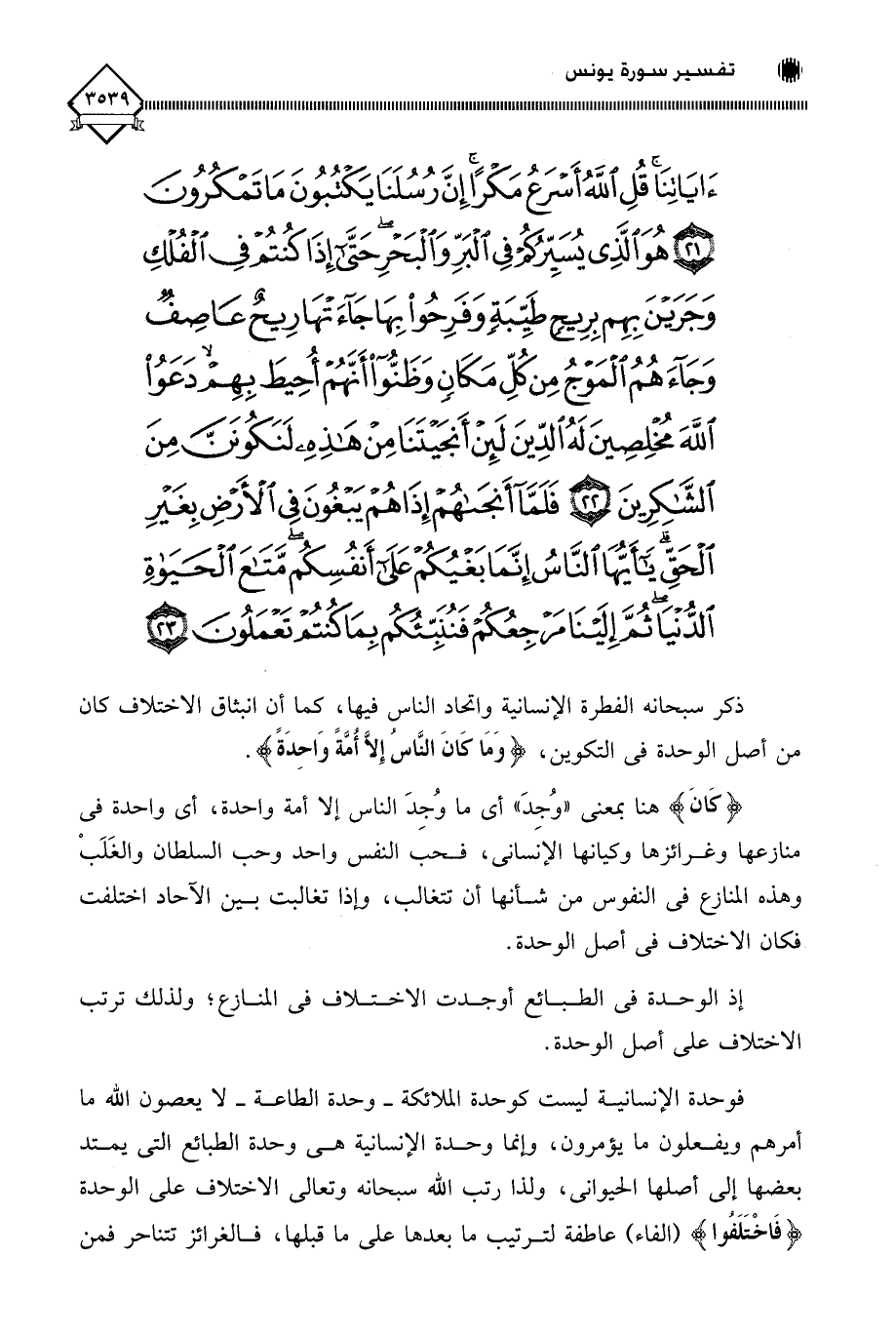 آيَاتِنَا قُلِ اللَّهُ أَسْرَعُ مَكْرًا إِنَّ رُسُلَنَا يَكْتُبُونَ مَا تَمْكُرُونَ (21) هُوَ الَّذِي يُسَيِّرُكُمْ فِي الْبَرِّ وَالْبَحْرِ حَتَّى إِذَا كُنْتُمْ فِي الْفُلْكِ وَجَرَيْنَ بِهِمْ بِرِيحٍ طَيِّبَةٍ وَفَرِحُوا بِهَا جَاءَتْهَا رِيحٌ عَاصِفٌ وَجَاءَهُمُ الْمَوْجُ مِنْ كُلِّ مَكَانٍ وَظَنُّوا أَنَّهُمْ أُحِيطَ بِهِمْ دَعَوُا اللَّهَ مُخْلِصِينَ لَهُ الدِّينَ لَئِنْ أَنْجَيْتَنَا مِنْ هَذِهِ لَنَكُونَنَّ مِنَ الشَّاكِرِينَ (22) فَلَمَّا أَنْجَاهُمْ إِذَا هُمْ يَبْغُونَ فِي الْأَرْضِ بِغَيْرِ الْحَقِّ يَا أَيُّهَا النَّاسُ إِنَّمَا بَغْيُكُمْ عَلَى أَنْفُسِكُمْ مَتَاعَ الْحَيَاةِ الدُّنْيَا ثُمَّ إِلَيْنَا مَرْجِعُكُمْ فَنُنَبِّئُكُمْ بِمَا كُنْتُمْ تَعْمَلُونَ (23)