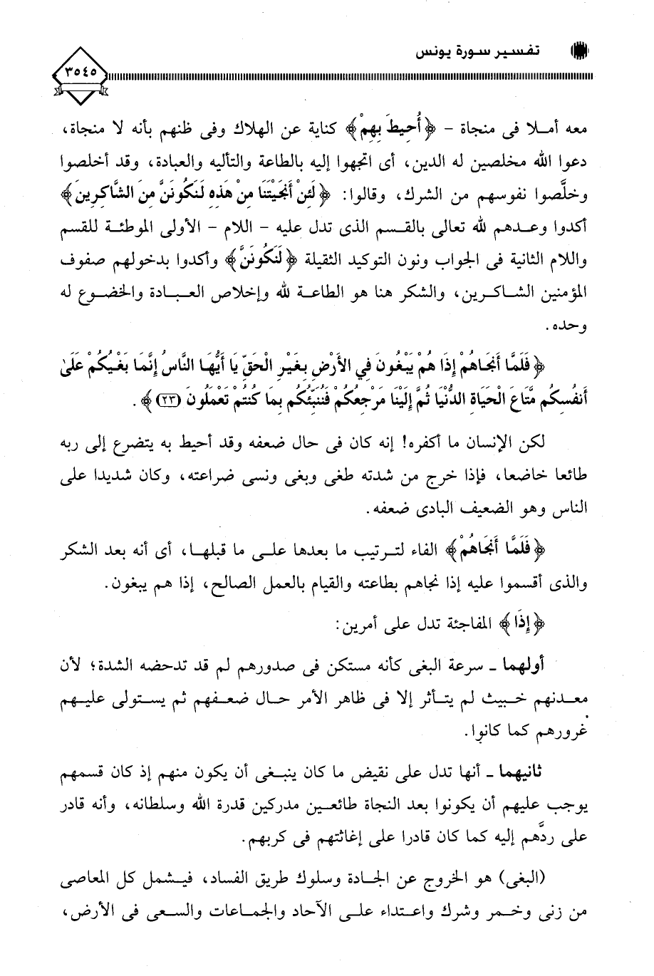 (فَلَمَّا أَنْجَاهُمْ إِذَا هُمْ يَبْغُونَ فِي الْأَرْضِ بِغَيْرِ الْحَقِّ يَا أَيُّهَا النَّاسُ إِنَّمَا بَغْيُكُمْ عَلَى أَنْفُسِكُمْ مَتَاعَ الْحَيَاةِ الدُّنْيَا ثُمَّ إِلَيْنَا مَرْجِعُكُمْ فَنُنَبِّئُكُمْ بِمَا كُنْتُمْ تَعْمَلُونَ (23)