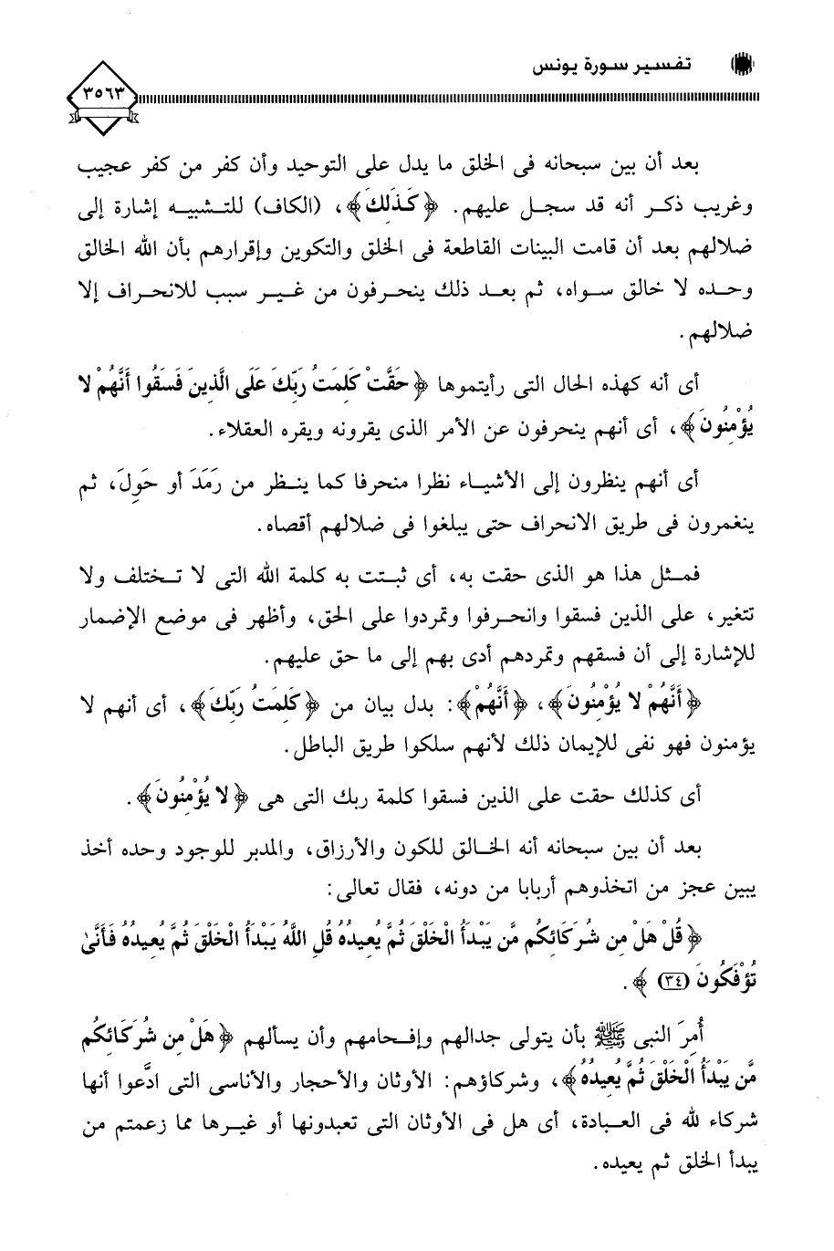 فمثل هذا هو الذي حقت به، أي ثبتت به كلمة اللَّه التي لَا تختلف ولا تتغير، على الذين فسقوا وانحرفوا وتمردوا على الحق، وأظهر في موضع الإضمار للإشارة إلى أن فسقهم وتمردهم أدى بهم إلى ما حق عليهم.