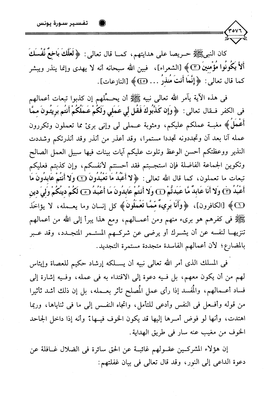 ْفى المسلك الذي أمر اللَّه تعالى نبيه أن يسلكه إرشاد حكيم للعصاة وإيئاس لهم من أن يكون معهم، بل فيه دعوة إلى الاقتداء به في عمله، وفيه إشارة إلى فساد أعمالهم، والمُفسد إذا رأى عمل المُصلح تأثر بعمله، بل إن ذلك أشد ثأثيرا من قوله وأفعل في النفس وأدعى للتأمل، واتجاه النفس إلى ما في ثناياها، وربما اهتدت، وأنها لو فوض أمرها إليها قد يكون الخوف فيها، وأنه إذا داخل الجاحد الخوف من مغيب عنه سار في طريق الهداية.