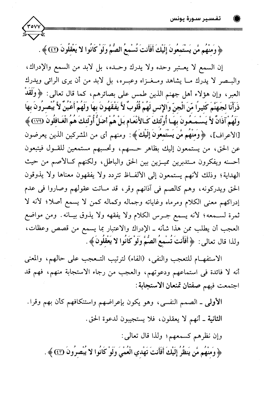 (وَمِنْهُمْ مَنْ يَسْتَمِعُونَ إِلَيْكَ أَفَأَنْتَ تُسْمِعُ الصُّمَّ وَلَوْ كَانُوا لَا يَعْقِلُونَ (42)