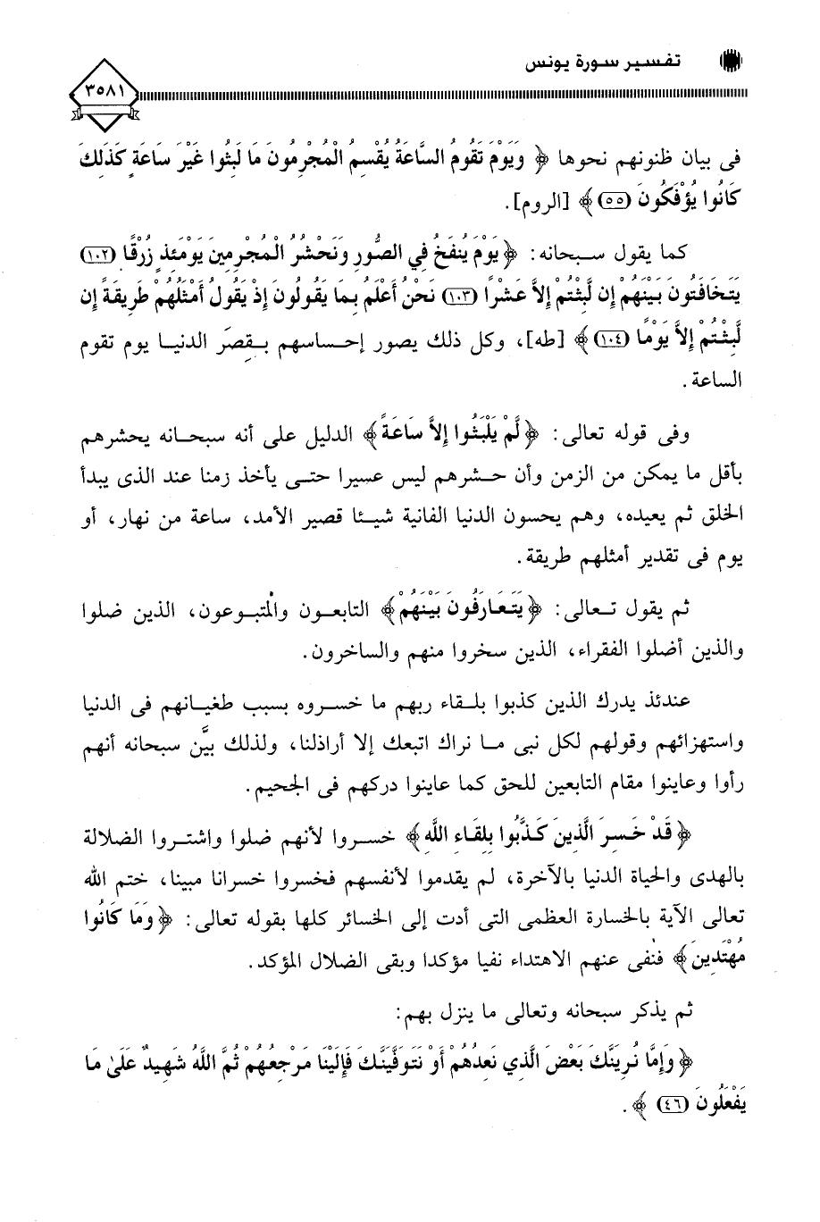 وفى قوله تعالى: (لَّمْ يَلْبَثُوا إِلَّا سَاعَةً) الدليل على أنه سبحانه يحشرهم بأقل ما يمكن من الزمن وأن حشرهم ليس عسيرا حتى يأخذ زمنا عند الذي يبدأ الخلق ثم يعيده، وهم يحسون الدنيا الفانية شيئا قصير الأمد، ساعة من نهار، أو يوم في تقدير أمثلهم طريقة.