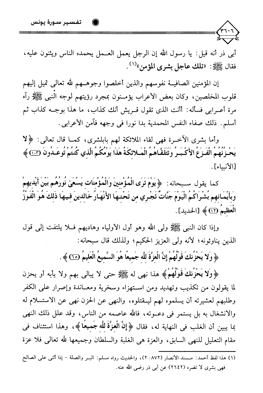 (¬1) هذا لفظ أحمد: مسند الأنصار (20872)، والحديث رواه مسلم: البر والصلة - إذا أثني على الصالح فهي بشرى لَا تضره (2642) عن أبي ذر رضي الله عنه.