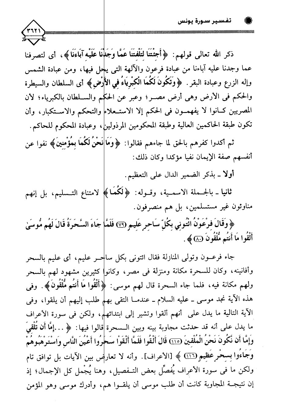 ذكر اللَّه تعالى قولهم: (أَجِئْتَنَا لِتَلْفِتَنَا عَمَّا وَجَدْنَا عَلَيْهِ آبَاءَنَا)، أي لتصرفنا عما وجدنا عليه آباءنا من عبادة فرعون والآلهة التي يحل فيها، ومن عبادة الشمس وإله الزرع وعبادة البقر. (وَتَكُونَ لَكُمَا الْكِبْرِيَاءُ فِي الْأَرْضِ) أي السلطان والسيطرة والحكم في الأرض وهي أرض مصر؛ وعبر عن الحكم والسلطان بالكبرياء؛ لأن المصريين كانوا لَا يفهمون في الحكم إلا الاستعلاء والتحكم والاستكبار، وأن تكون طبقة الحاكمين العالية وطبقة المحكومين المرذولين، وعبادة المحكوم للحاكم.