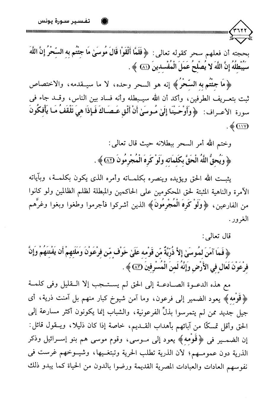 (فَمَا آمَنَ لِمُوسَى إِلَّا ذُرِّيَّةٌ مِنْ قَوْمِهِ عَلَى خَوْفٍ مِنْ فِرْعَوْنَ وَمَلَإِهِمْ أَنْ يَفْتِنَهُمْ وَإِنَّ فِرْعَوْنَ لَعَالٍ فِي الْأَرْضِ وَإِنَّهُ لَمِنَ الْمُسْرِفِينَ (83)