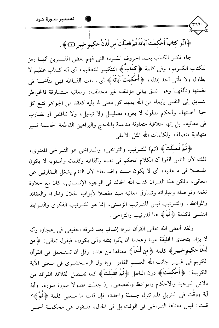 (الر كِتَابٌ أُحْكِمَتْ آيَاتُهُ ثُمَّ فُصِّلَتْ مِنْ لَدُنْ حَكِيمٍ خَبِيرٍ (1).