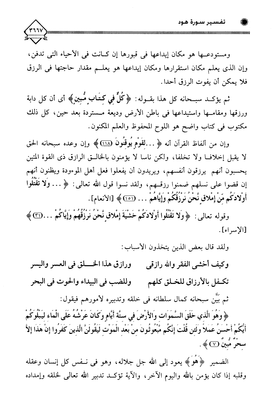 ثم يؤكد سبحانه كل هذا بقوله: (كُلٌّ فِي كِتَابٍ مُبِينٍ) أي أن كل دابة ورزقها ومقامها واستيداعها في باطن الأرض وديعة مستردة بعد حين، كل ذلك مكتوب في كتاب واضح هو اللوح المحفوظ والعلم المكنون.