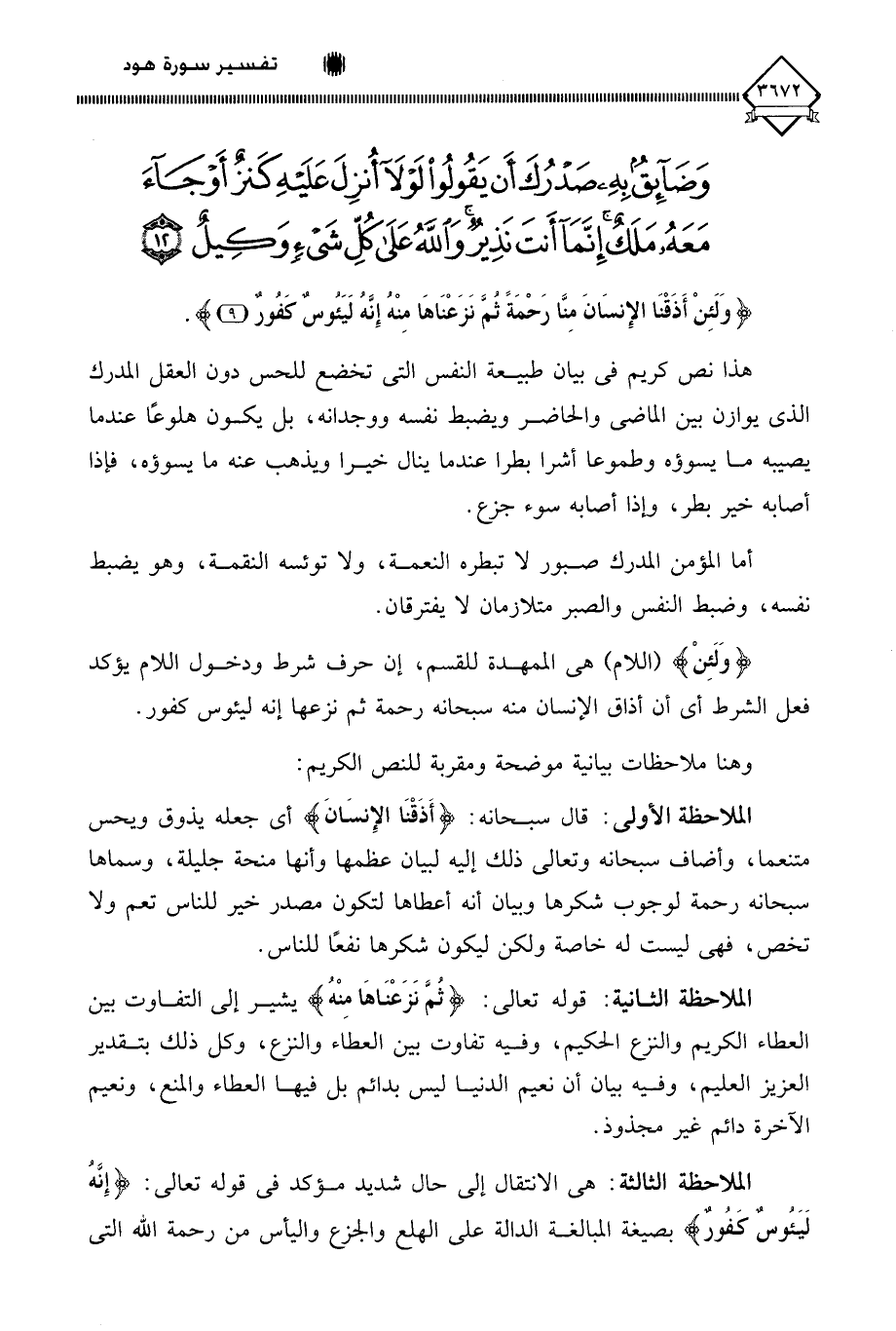 الملاحظة الثالثة: هي الانتقال إلى حال شديد مؤكد في قوله تعالى: (إِنَّهُ لَيَئُوسٌ كَفُورٌ) بصيغة المبالغة الدالة على الهلع والجزع واليأس من رحمة اللَّه التي