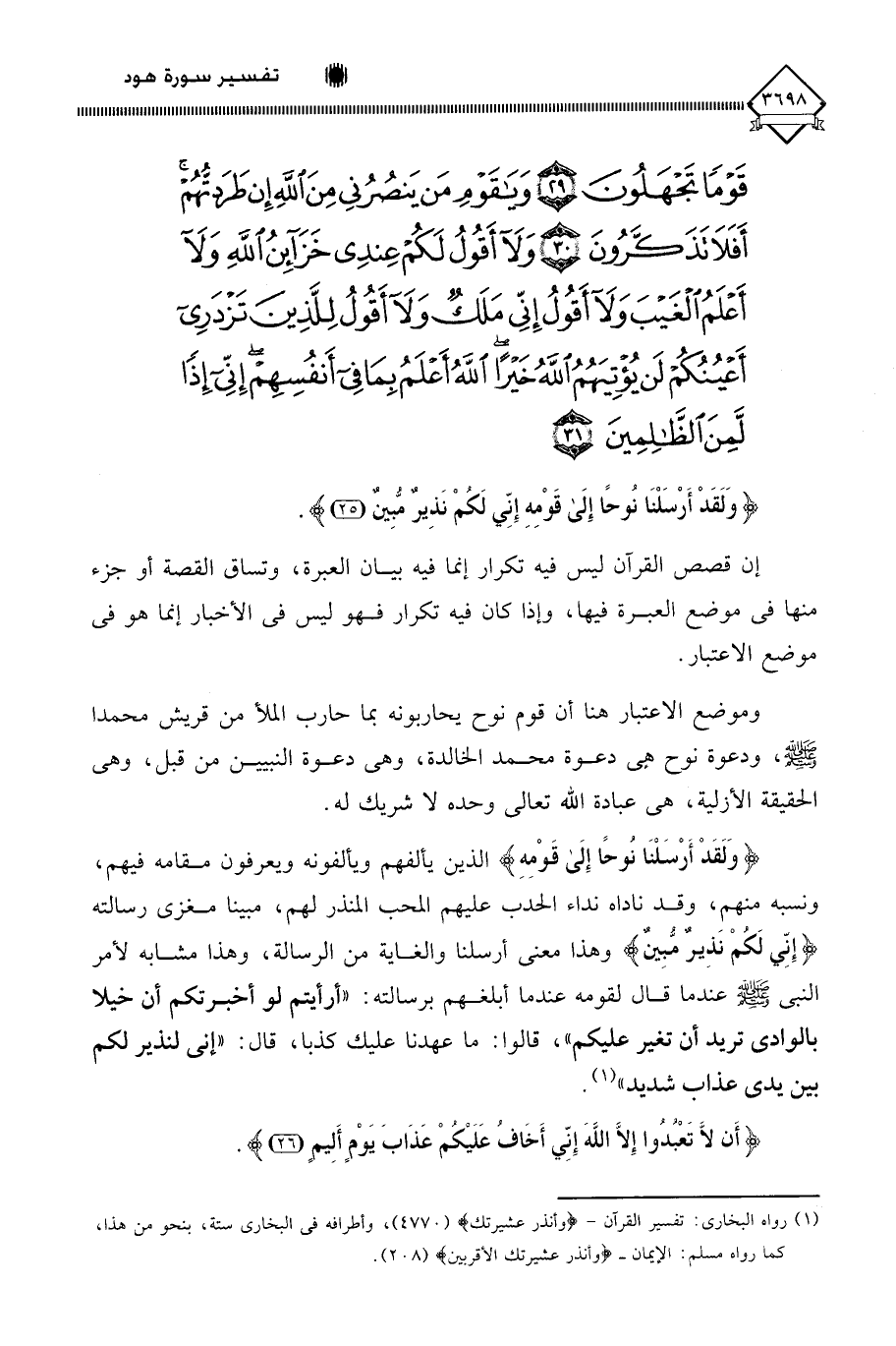 (أَنْ لَا تَعْبُدُوا إِلَّا اللَّهَ إِنِّي أَخَافُ عَلَيْكُمْ عَذَابَ يَوْمٍ أَلِيمٍ (26)