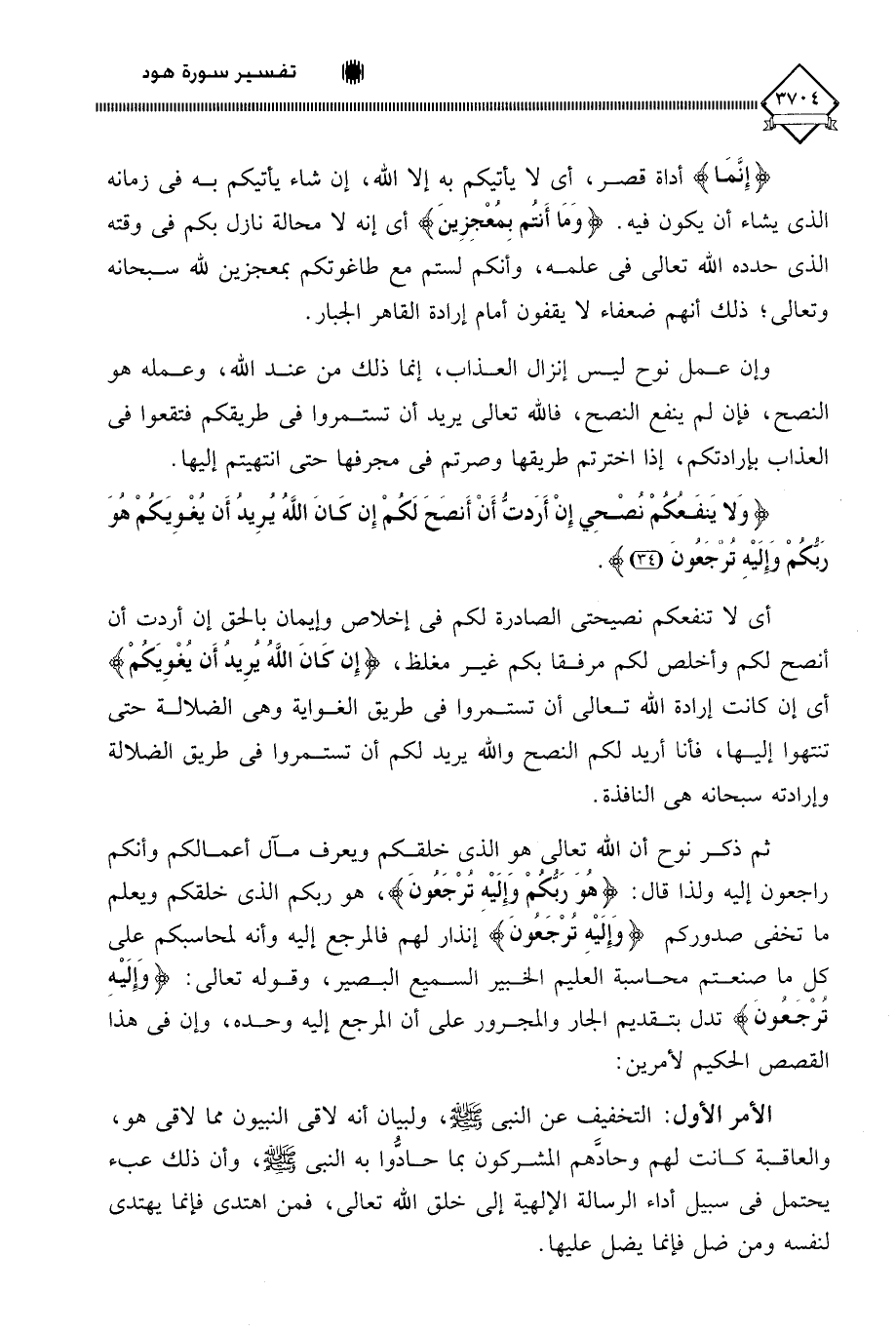 (وَلَا يَنْفَعُكُمْ نُصْحِي إِنْ أَرَدْتُ أَنْ أَنْصَحَ لَكُمْ إِنْ كَانَ اللَّهُ يُرِيدُ أَنْ يُغْوِيَكُمْ هُوَ رَبُّكُمْ وَإِلَيْهِ تُرْجَعُونَ (34)