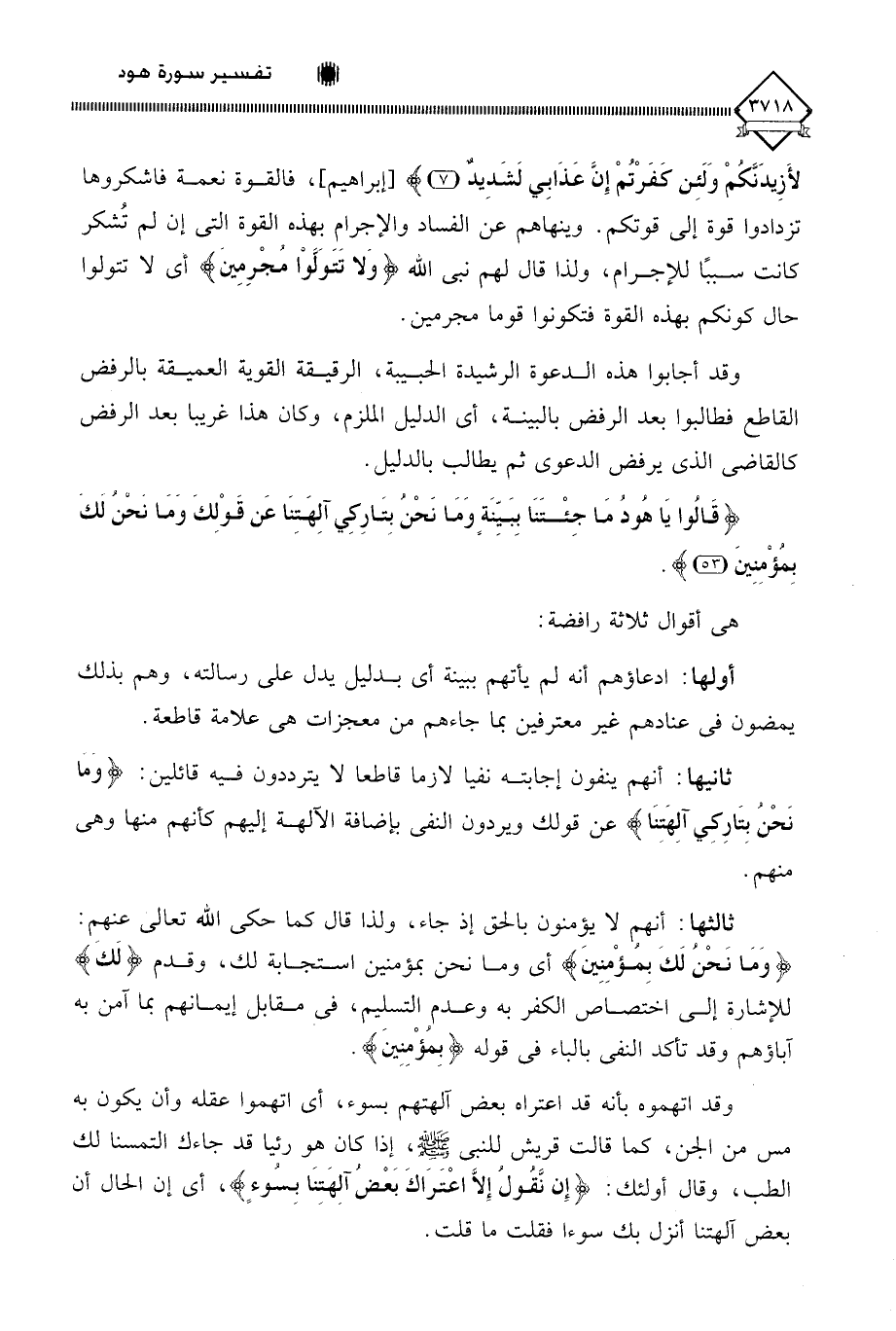 (قَالُوا يَا هُودُ مَا جِئْتَنَا بِبَيِّنَةٍ وَمَا نَحْنُ بِتَارِكِي آلِهَتِنَا عَنْ قَوْلِكَ وَمَا نَحْنُ لَكَ بِمُؤْمِنِينَ (53)