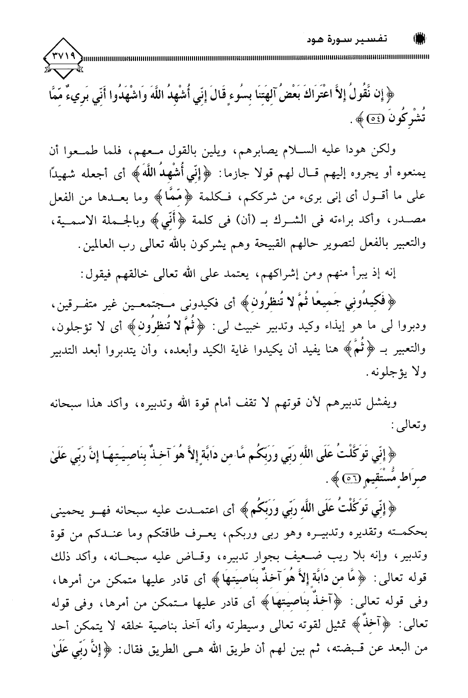 (إِنِّي تَوَكَّلْتُ عَلَى اللَّهِ رَبِّي وَرَبِّكُمْ مَا مِنْ دَابَّةٍ إِلَّا هُوَ آخِذٌ بِنَاصِيَتِهَا إِنَّ رَبِّي عَلَى صِرَاطٍ مُسْتَقِيمٍ (56)