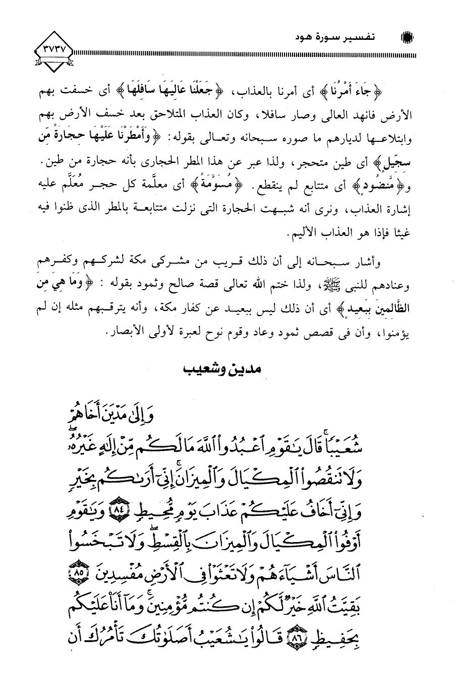 (وَإِلَى مَدْيَنَ أَخَاهُمْ شُعَيْبًا قَالَ يَا قَوْمِ اعْبُدُوا اللَّهَ مَا لَكُمْ مِنْ إِلَهٍ غَيْرُهُ وَلَا تَنْقُصُوا الْمِكْيَالَ وَالْمِيزَانَ إِنِّي أَرَاكُمْ بِخَيْرٍ وَإِنِّي أَخَافُ عَلَيْكُمْ عَذَابَ يَوْمٍ مُحِيطٍ (84) وَيَا قَوْمِ أَوْفُوا الْمِكْيَالَ وَالْمِيزَانَ بِالْقِسْطِ وَلَا تَبْخَسُوا النَّاسَ أَشْيَاءَهُمْ وَلَا تَعْثَوْا فِي الْأَرْضِ مُفْسِدِينَ (85) بَقِيَّتُ اللَّهِ خَيْرٌ لَكُمْ إِنْ كُنْتُمْ مُؤْمِنِينَ وَمَا أَنَا عَلَيْكُمْ بِحَفِيظٍ (86) قَالُوا يَا شُعَيْبُ أَصَلَاتُكَ تَأْمُرُكَ أَنْ