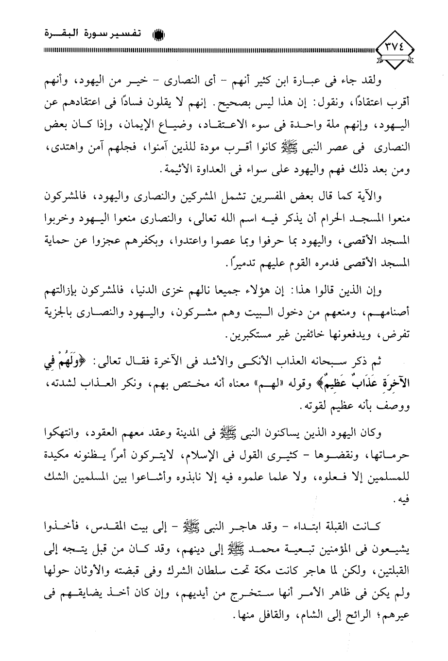 وكان اليهود الذين يساكنون النبي - صلى الله عليه وسلم - في المدينة وعقد معهم العقود، وانتهكوا حرماتها، ونقضوها - كثيري القول في الإسلام، لايتركون أمرًا يظنونه مكيدة للمسلمين إلا فعلوه، ولا علما علموه فيه إلا نابذوه وأشاعوا بين المسلمين الشك كانت القبلة ابتداء - وقد هاجر النبي - صلى الله عليه وسلم - إلى بيت المقدس، فأخذوا يشيعون في المؤمنين تبعية محمد - صلى الله عليه وسلم - إلى دينهم، وقد كان من قبل يتجه إلى القبلتين، ولكن لما هاجر كانت مكة تحت سلطان الشرك وفي قبضته والأوثان حولها ولم يكن في ظاهر الأمر أنها ستخرج من أيديهم، وإن كان أخذ يضايقهم في عيرهم؛ الرائح إلى الشام، والقافل منها.