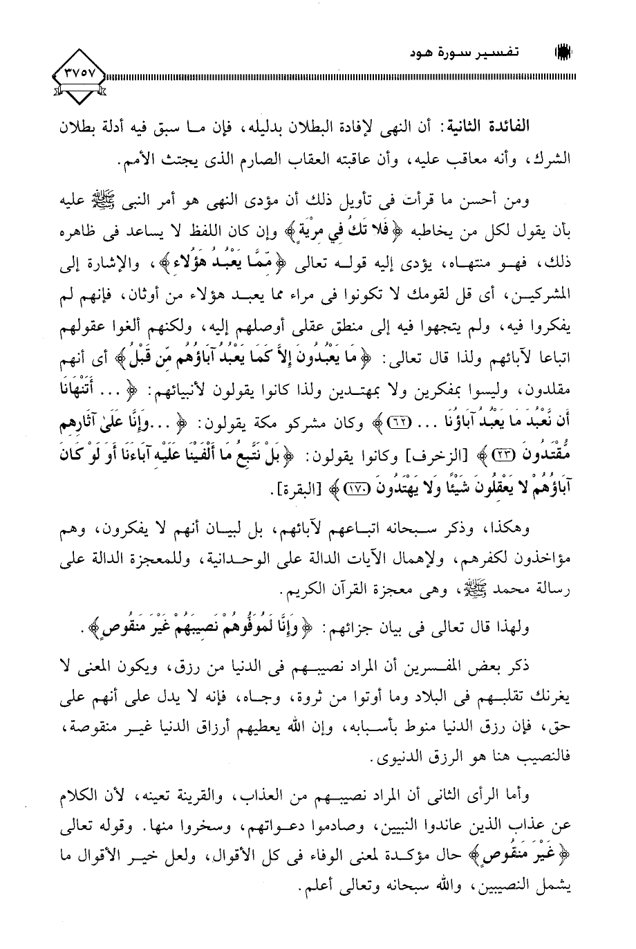 وأما الرأي الثاني أن المراد نصيبهم من العذاب، والقرينة تعينه، لأن الكلام عن عذاب الذين عاندوا النبيين، وصادموا دعواتهم، وسخروا منها. وقوله تعالى (غَيْرَ مَنْقُوصٍ) حال مؤكدة لمعنى الوفاء في كل الأقوال، ولعل خير الأقوال ما يشمل النصيبين، واللَّه سبحانه وتعالى أعلم.