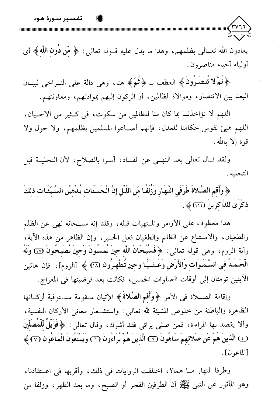 (وَأَقِمِ الصَّلَاةَ طَرَفَيِ النَّهَارِ وَزُلَفًا مِنَ اللَّيْلِ إِنَّ الْحَسَنَاتِ يُذْهِبْنَ السَّيِّئَاتِ ذَلِكَ ذِكْرَى لِلذَّاكِرِينَ (114)
