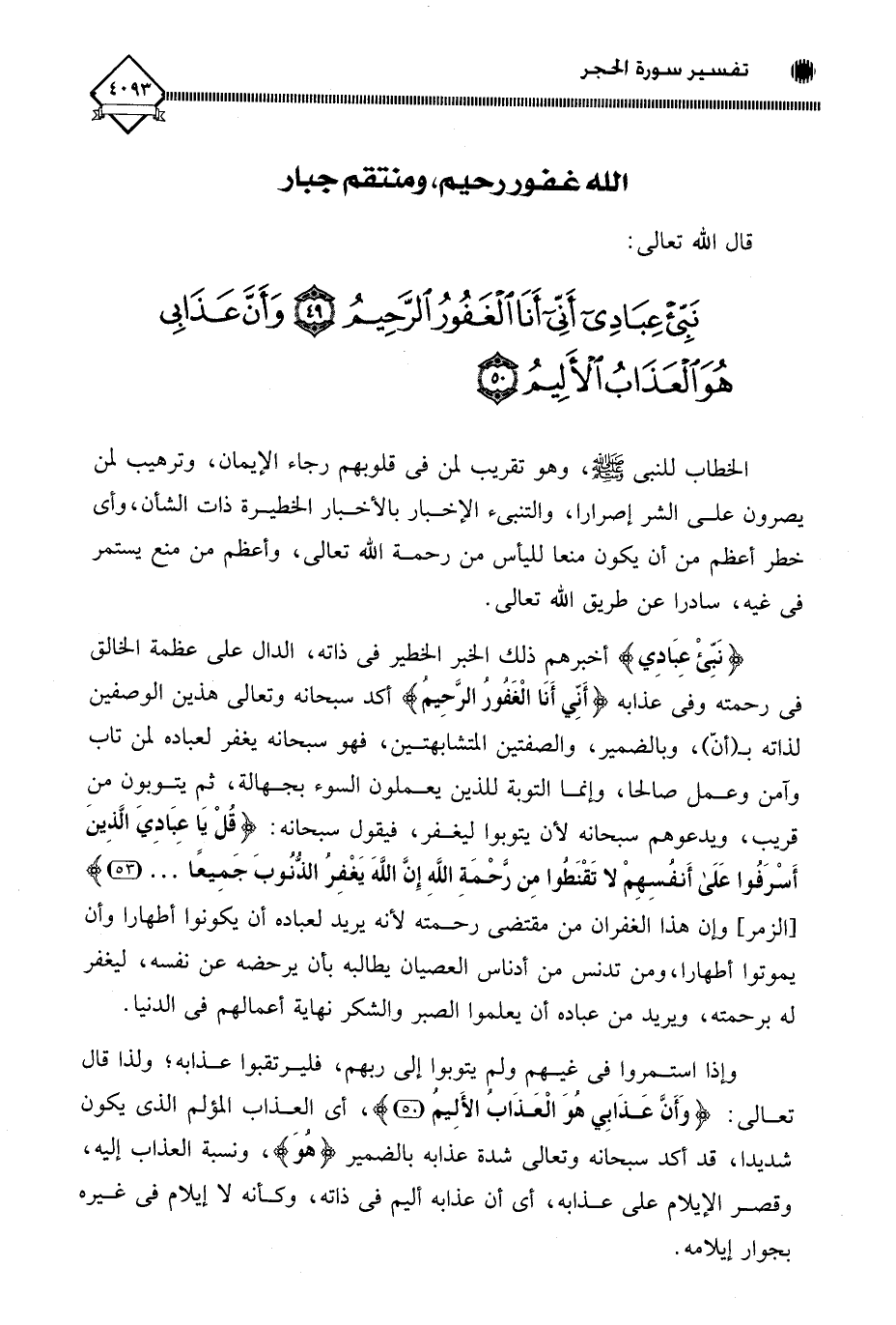 (نَبِّئْ عِبَادِي أَنِّي أَنَا الْغَفُورُ الرَّحِيمُ (49) وَأَنَّ عَذَابِي هُوَ الْعَذَابُ الْأَلِيمُ (50)