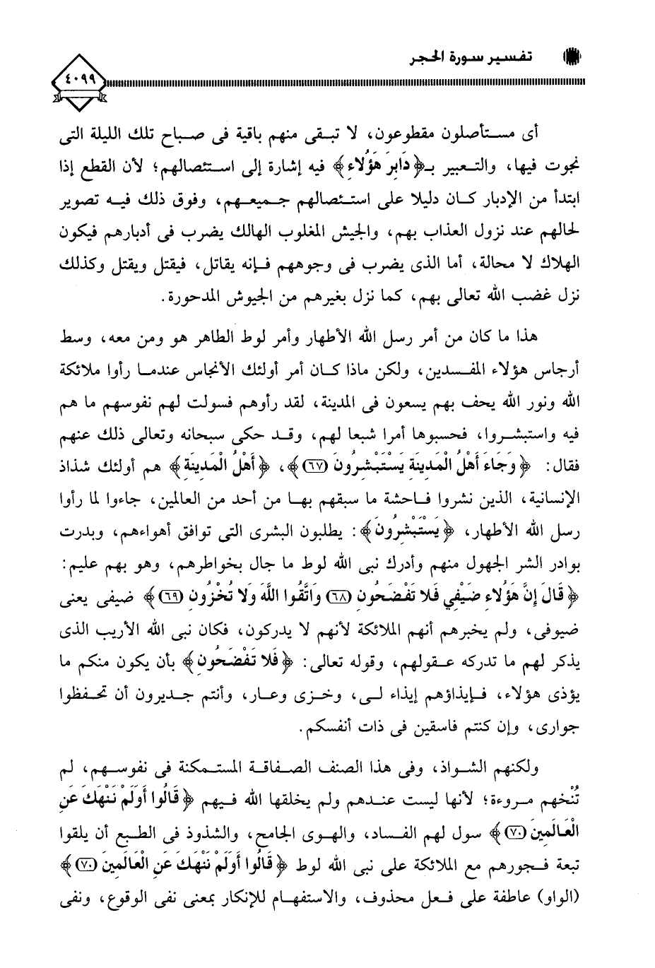 (أَهْلُ الْمَدِينَةِ) هم أولئك شذاذ الإنسانية، الذين نشروا فاحشة ما سبقهم بها من أحد من العالمين، جاءوا لما رأوا رسل اللَّه الأطهار، (يَسْتَبْشِرُونَ): يطلبون البشرى التي توافق أهواءهم، وبدرت بوادر الشر الجهول منهم وأدرك نبي اللَّه لوط ما جال بخواطرهم، وهو بهم عليم: