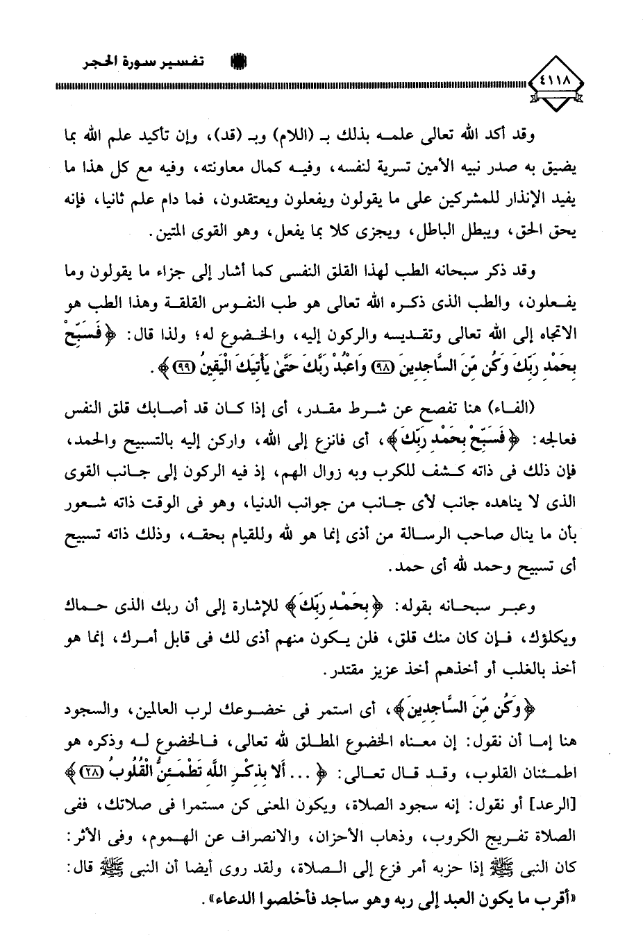 (فَسَبِّحْ بِحَمْدِ رَبِّكَ وَكُنْ مِنَ السَّاجِدِينَ (98) وَاعْبُدْ رَبَّكَ حَتَّى يَأْتِيَكَ الْيَقِينُ (99)