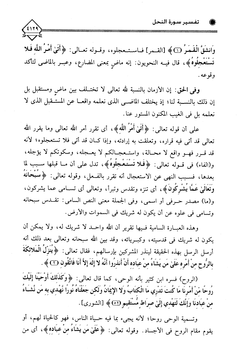 على أن قوله تعالى: (أَتَى أَمْرُ اللَّهِ)، أي تقرر أمر اللَّه تعالى وما يقرر اللَّه تعالى قد أتى فيه قراره، وتعلقت به إرادته، وإذا كان قد أتى فلا تستعجلوه؛ لأنه قد قرر فهو واقع لَا محالة، واستعجالكم لَا يعجله، وسكوتكم لَا يؤجله، و (الفاء) في قوله تعالى: (فَلا تَسْتَعْجِلُوهُ)، تدل على أن ما قبلها سبب لما بعدها، فسبب النهي عن الاستعجال أنه تقرر بالفعل، وقوله تعالى: (سُبْحَانَهُ وَتَعَالَى عَمَّا يُشْرِكُونَ)، أي تنزه وتقدس وتبرأ، وتعالى أي تسامى عما يشركون، و (ما) مصدر حرفي أو اسمي، وفي الجملة معنى النص السامي: تقدس سبحانه وتسامى في علوه عن أن يكون له شريك في السماوات والأرض.
