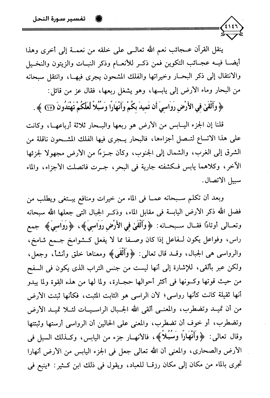 (وَأَلْقَى فِي الْأَرْضِ رَوَاسِيَ أَنْ تَمِيدَ بِكُمْ وَأَنْهَارًا وَسُبُلًا لَعَلَّكُمْ تَهْتَدُونَ (15)