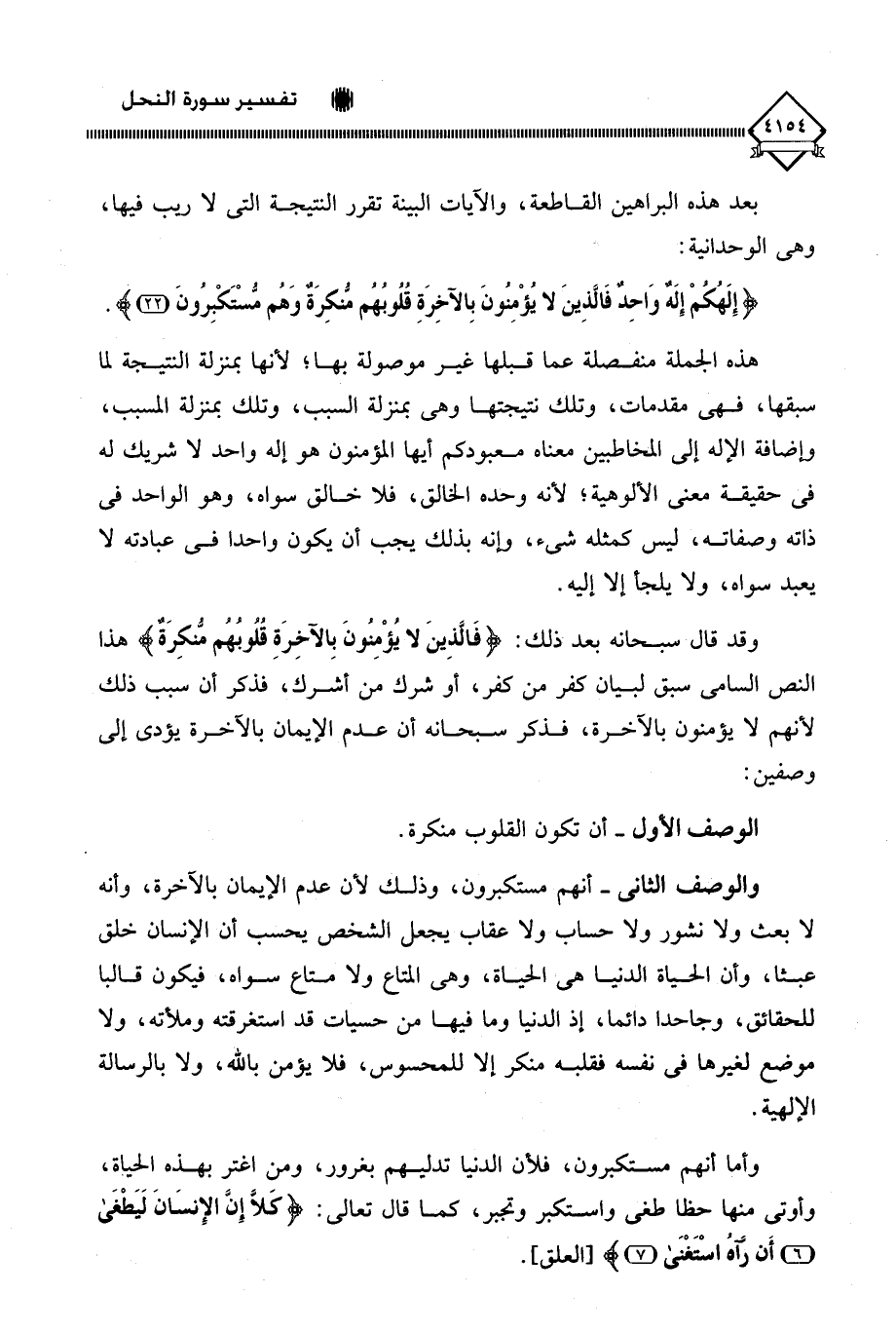 (إِلَهُكُمْ إِلَهٌ وَاحِدٌ فَالَّذِينَ لَا يُؤْمِنُونَ بِالْآخِرَةِ قُلُوبُهُمْ مُنْكِرَةٌ وَهُمْ مُسْتَكْبِرُونَ (22)