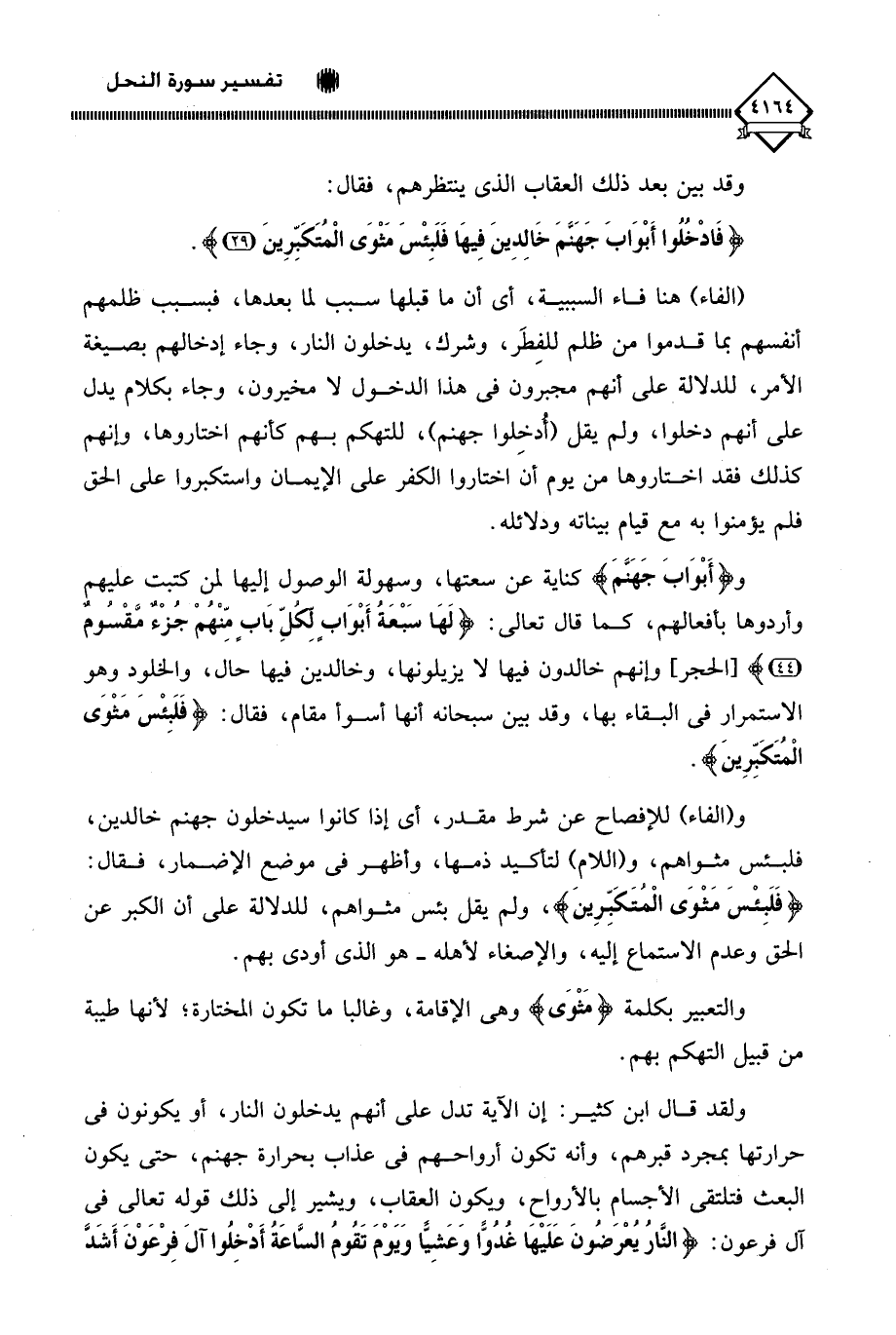 (فَادْخُلُوا أَبْوَابَ جَهَنَّمَ خَالِدِينَ فِيهَا فَلَبِئْسَ مَثْوَى الْمُتَكَبِّرِينَ (29)