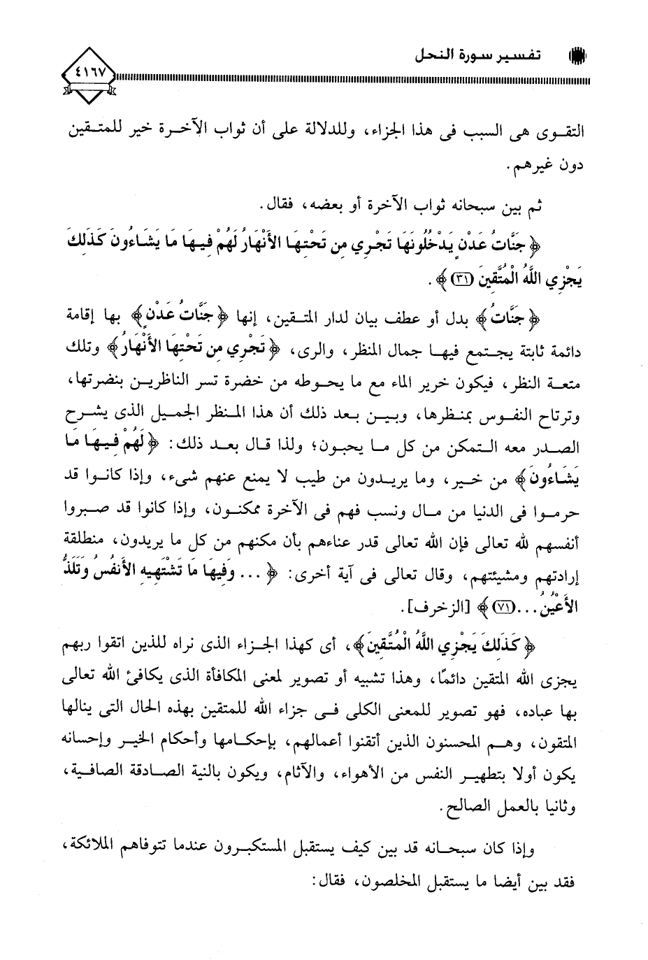 (جَنَّاتُ عَدْنٍ يَدْخُلُونَهَا تَجْرِي مِنْ تَحْتِهَا الْأَنْهَارُ لَهُمْ فِيهَا مَا يَشَاءُونَ كَذَلِكَ يَجْزِي اللَّهُ الْمُتَّقِينَ (31)