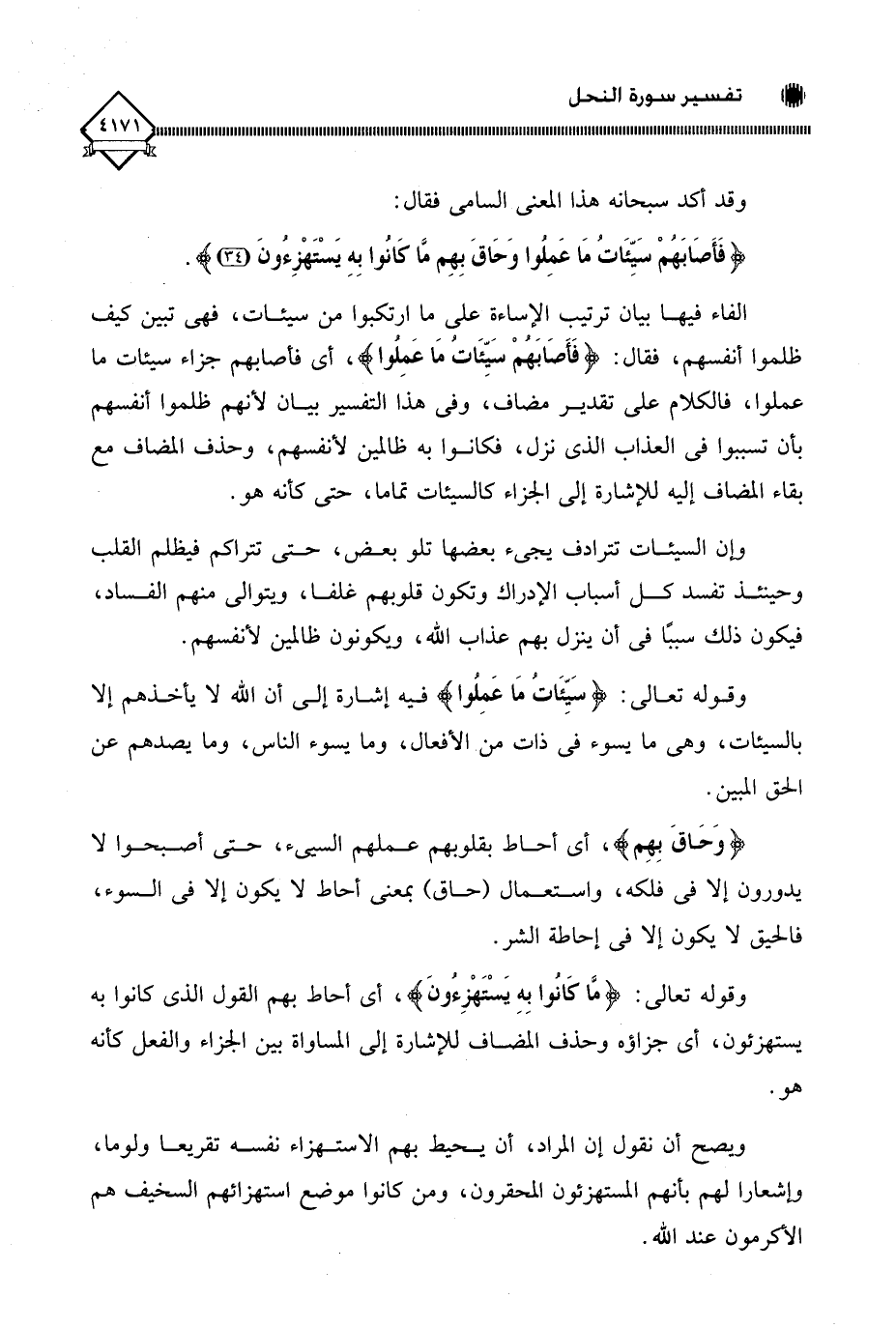 (فَأَصَابَهُمْ سَيِّئَاتُ مَا عَمِلُوا وَحَاقَ بِهِمْ مَا كَانُوا بِهِ يَسْتَهْزِءُونَ (34)