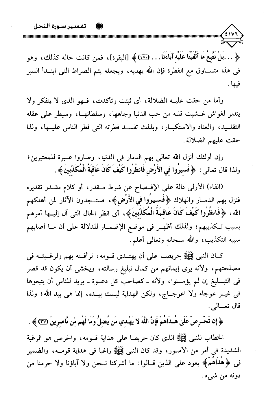 (. . . بَلْ نَتَّبِعُ مَا أَلْفَيْنَا عَلَيْهِ آبَاءَنَا)، فمن كانت حاله كذلك، وهو في هذا متساوق مع الفطرة فإن اللَّه يهديه، ويجعله يتم الصراط التي ابتدأ السير فيها.