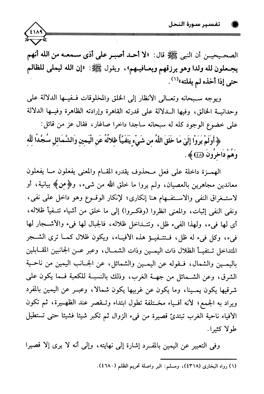(أَوَلَمْ يَرَوْا إِلَى مَا خَلَقَ اللَّهُ مِنْ شَيْءٍ يَتَفَيَّأُ ظِلَالُهُ عَنِ الْيَمِينِ وَالشَّمَائِلِ سُجَّدًا لِلَّهِ وَهُمْ دَاخِرُونَ (48)
