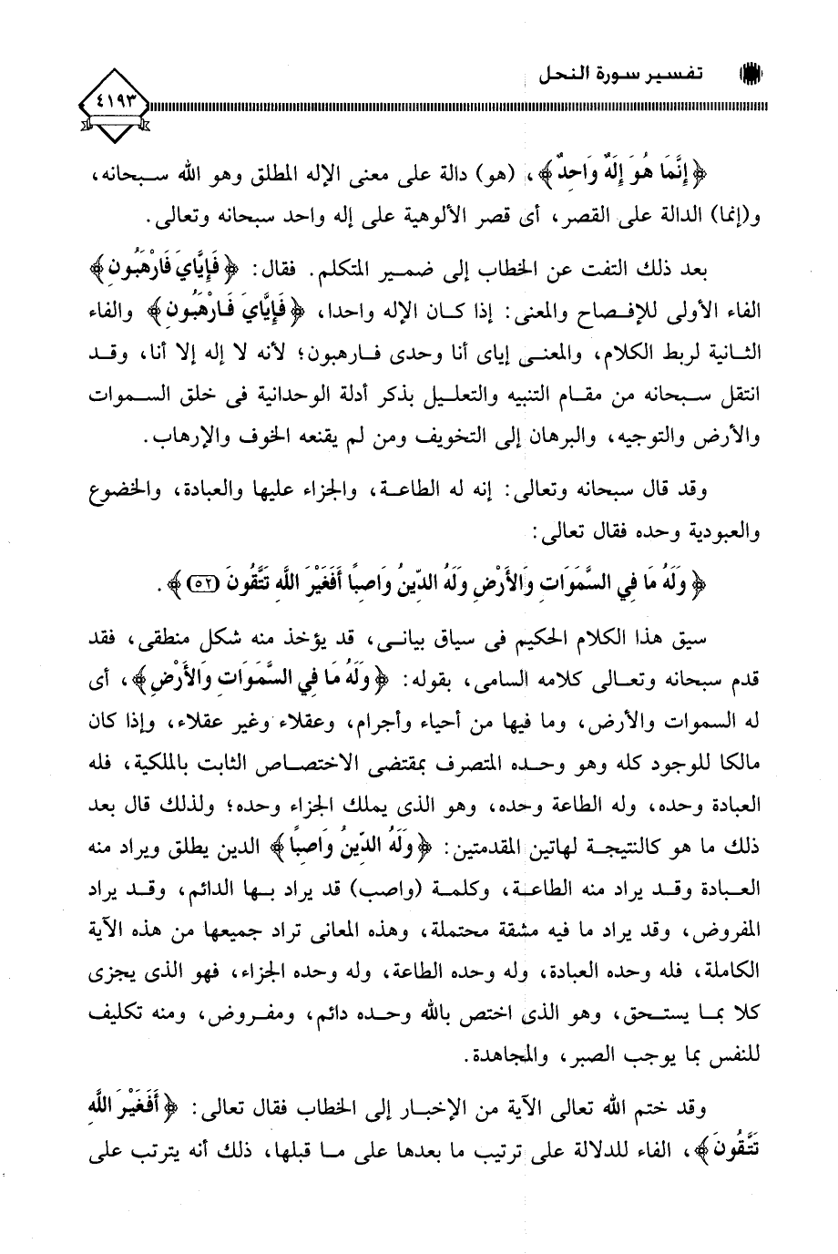 (وَلَهُ مَا فِي السَّمَاوَاتِ وَالْأَرْضِ وَلَهُ الدِّينُ وَاصِبًا أَفَغَيْرَ اللَّهِ تَتَّقُونَ (52)