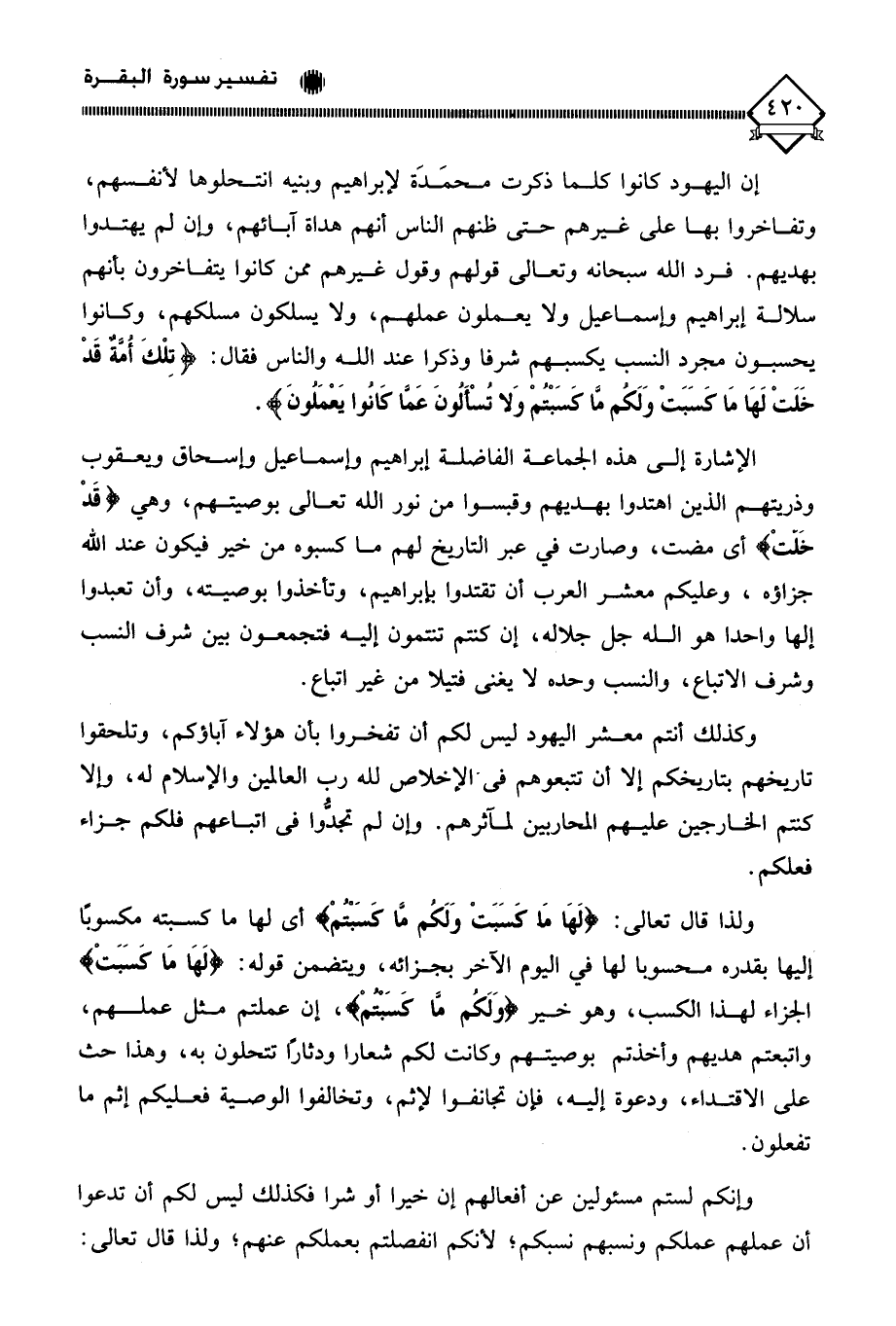 (تِلْكَ أُمَّةٌ قَدْ خَلَتْ لَهَا مَا كَسَبَتْ وَلَكُمْ مَا كَسَبْتُمْ وَلَا تُسْأَلُونَ عَمَّا كَانُوا يَعْمَلُونَ).