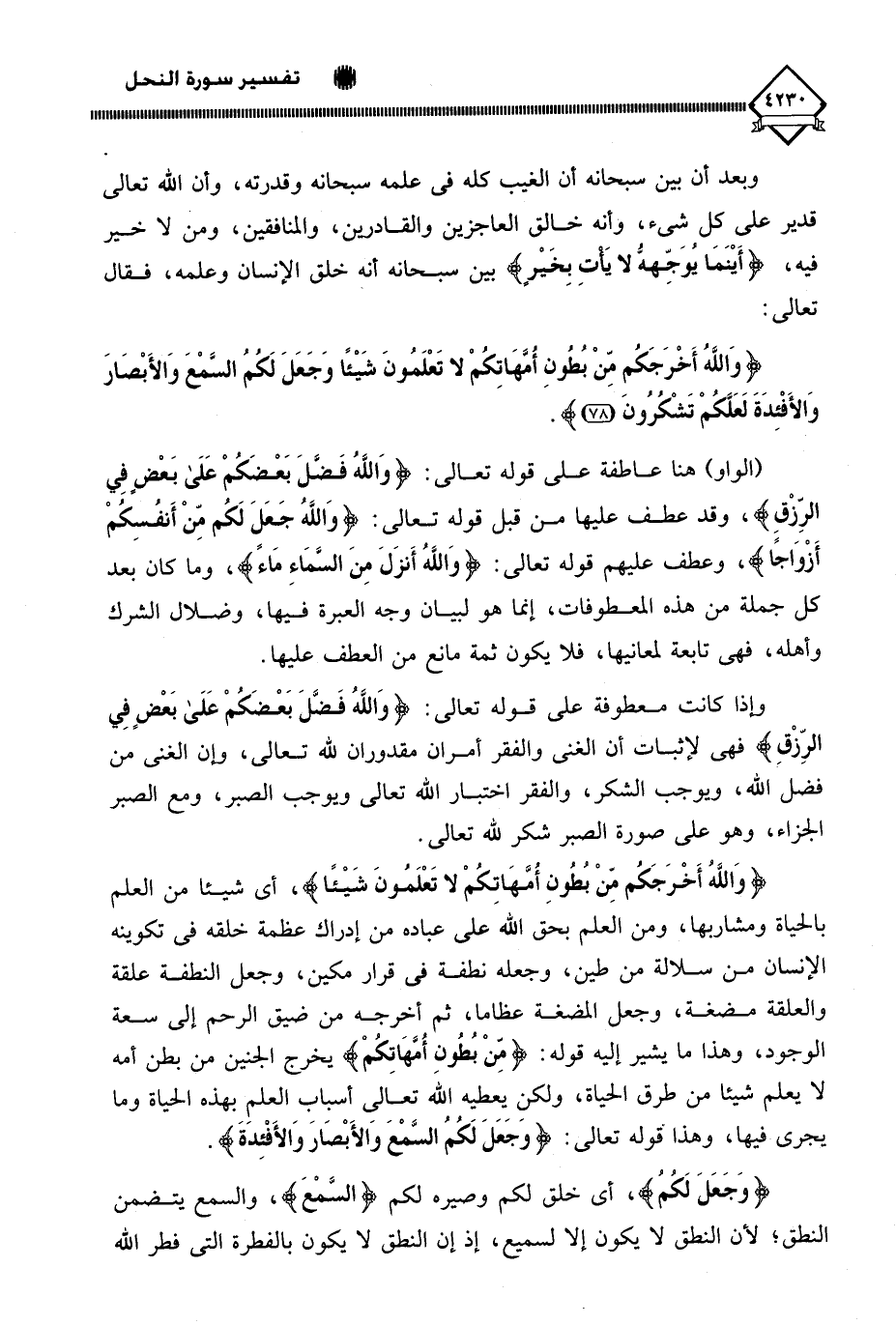 (وَاللَّهُ أَخْرَجَكُمْ مِنْ بُطُونِ أُمَّهَاتِكُمْ لَا تَعْلَمُونَ شَيْئًا وَجَعَلَ لَكُمُ السَّمْعَ وَالْأَبْصَارَ وَالْأَفْئِدَةَ لَعَلَّكُمْ تَشْكُرُونَ (78)