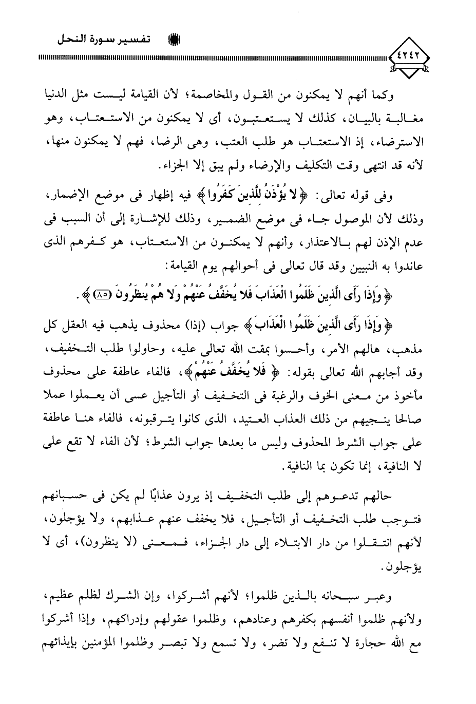 (وَإِذَا رَأَى الَّذِينَ ظَلَمُوا الْعَذَابَ فَلَا يُخَفَّفُ عَنْهُمْ وَلَا هُمْ يُنْظَرُونَ (85)