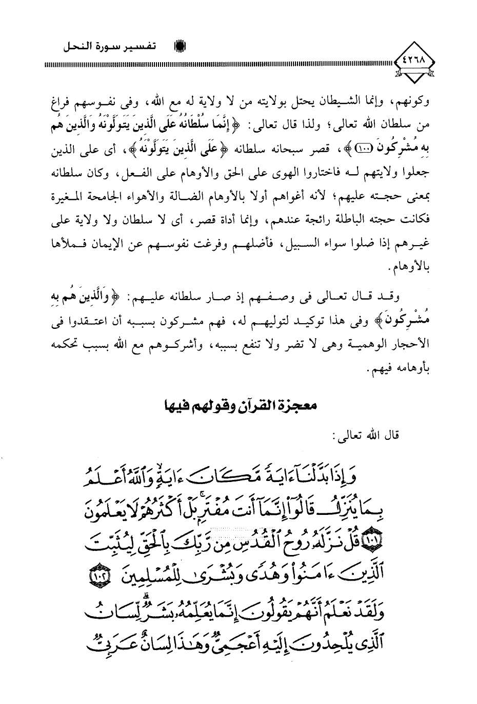 (إِنَّمَا سُلْطَانُهُ عَلَى الَّذِينَ يَتَوَلَّوْنَهُ وَالَّذِينَ هُمْ بِهِ مُشْرِكُونَ (100)