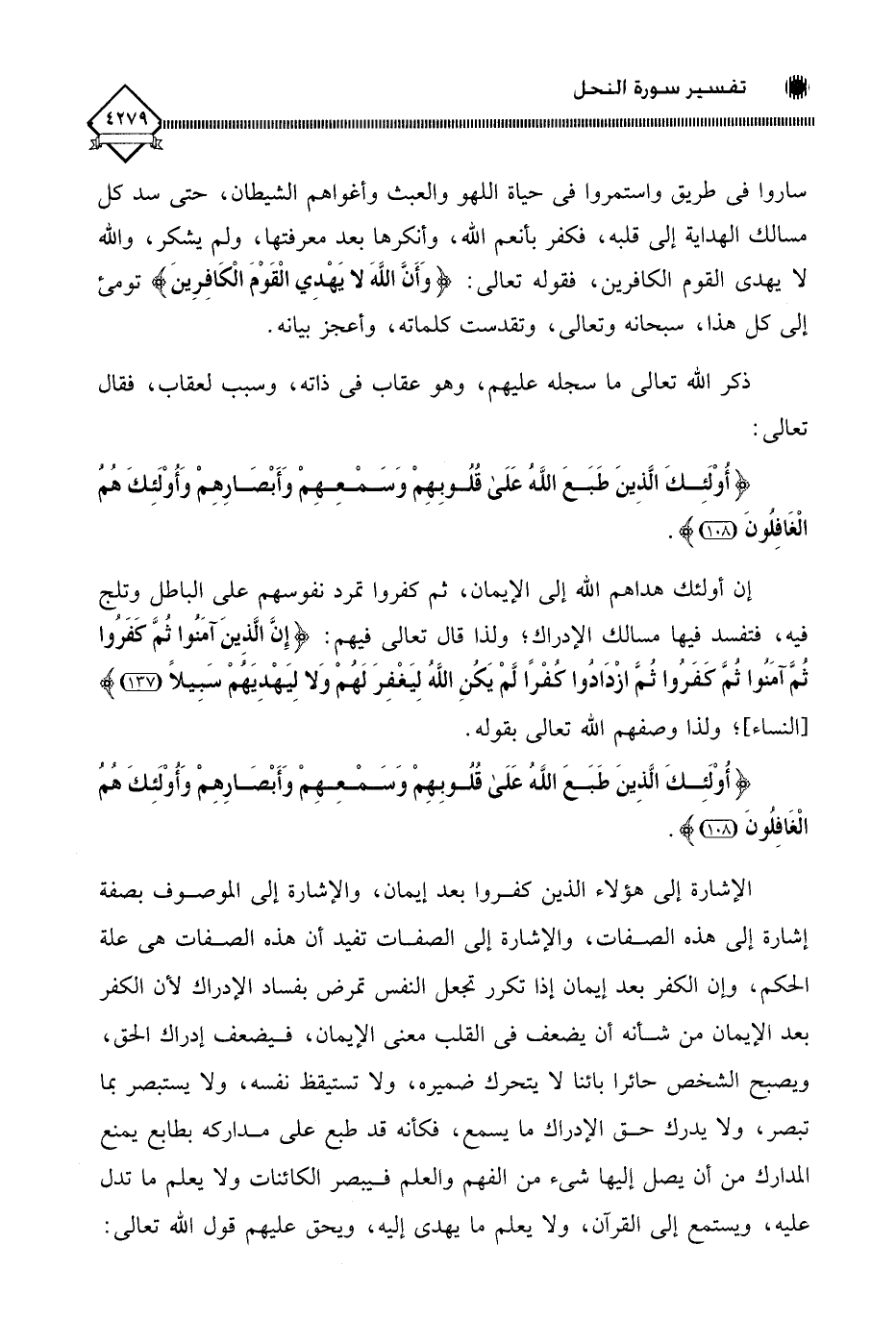(أُولَئِكَ الَّذِينَ طَبَعَ اللَّهُ عَلَى قُلُوبِهِمْ وَسَمْعِهِمْ وَأَبْصَارِهِمْ وَأُولَئِكَ هُمُ الْغَافِلُونَ (108)