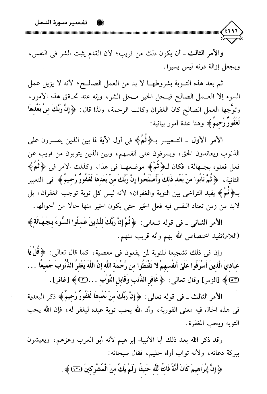 وإن في ذلك تشجيعا للتوبة لمن يقعون في معصية، كما قال تعالى: (قُلْ يَا عِبَادِيَ الَّذِينَ أَسْرَفُوا عَلَى أَنْفُسِهِمْ لَا تَقْنَطُوا مِنْ رَحْمَةِ اللَّهِ إِنَّ اللَّهَ يَغْفِرُ الذُّنُوبَ جَمِيعًا. . .)، وقال تعالى: (غَافِرِ الذَّنبِ وَقَابِلِ التَّوْبِ. . .)، الأمر الثالث - في قوله تعالى: (إِنَّ رَبَّكَ مِنْ بَعْدِهَا لَغَفُورٌ رحِيمٌ) ذ كر البعدية في هذه الحال فيه معنى الفورية، وأن اللَّه يحب توبة عبده ليغفر له، فإن اللَّه يحب التوبة ويحب المغفرة.