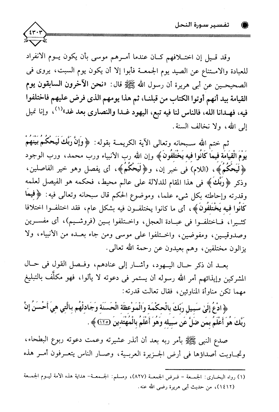 (ادْعُ إِلَى سَبِيلِ رَبِّكَ بِالْحِكْمَةِ وَالْمَوْعِظَةِ الْحَسَنَةِ وَجَادِلْهُمْ بِالَّتِي هِيَ أَحْسَنُ إِنَّ رَبَّكَ هُوَ أَعْلَمُ بِمَنْ ضَلَّ عَنْ سَبِيلِهِ وَهُوَ أَعْلَمُ بِالْمُهْتَدِينَ (125)