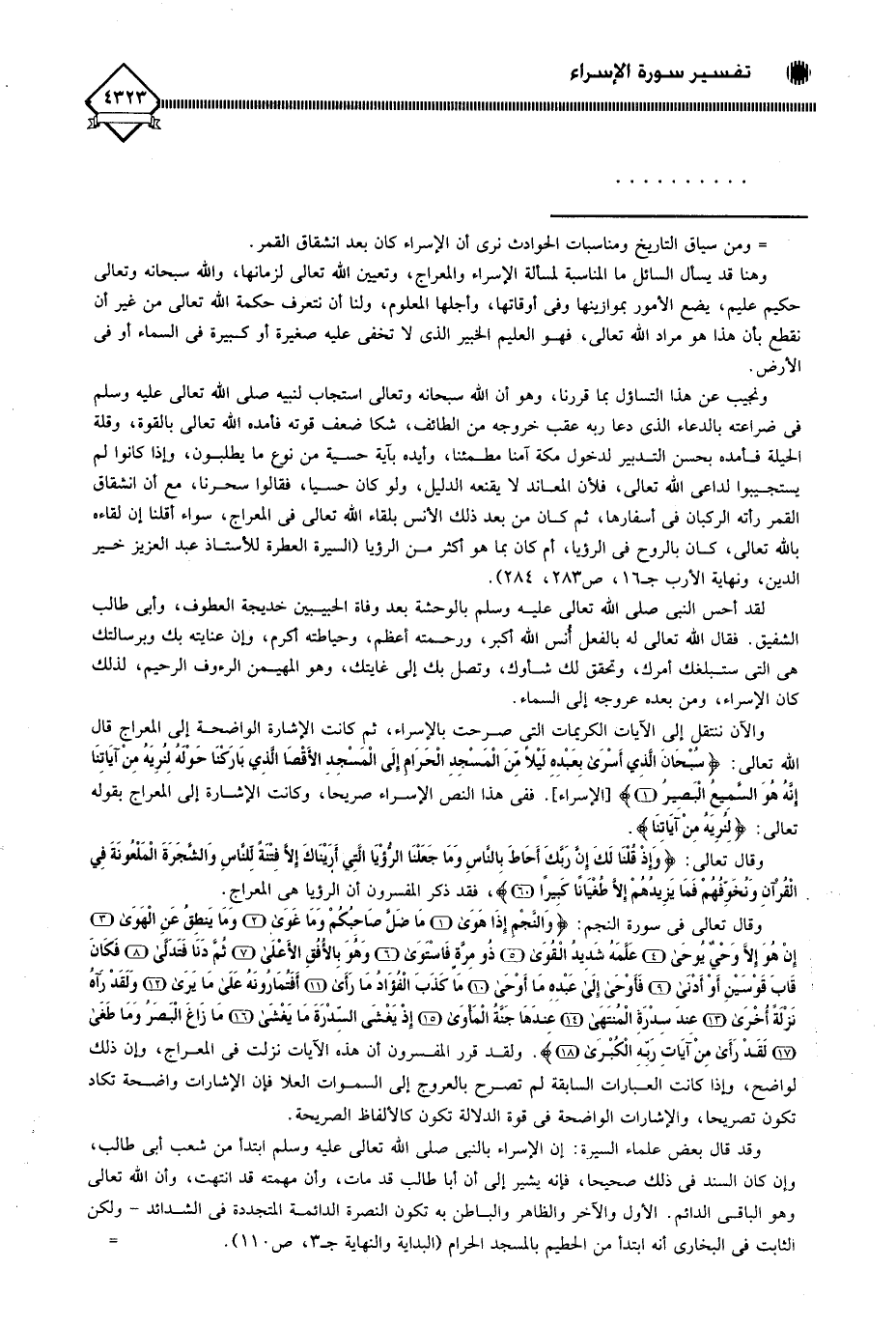 = ومن سياق التاريخ ومناسبات الحوادث نرى أن الإسراء كان بعد انشقاق القمر.
