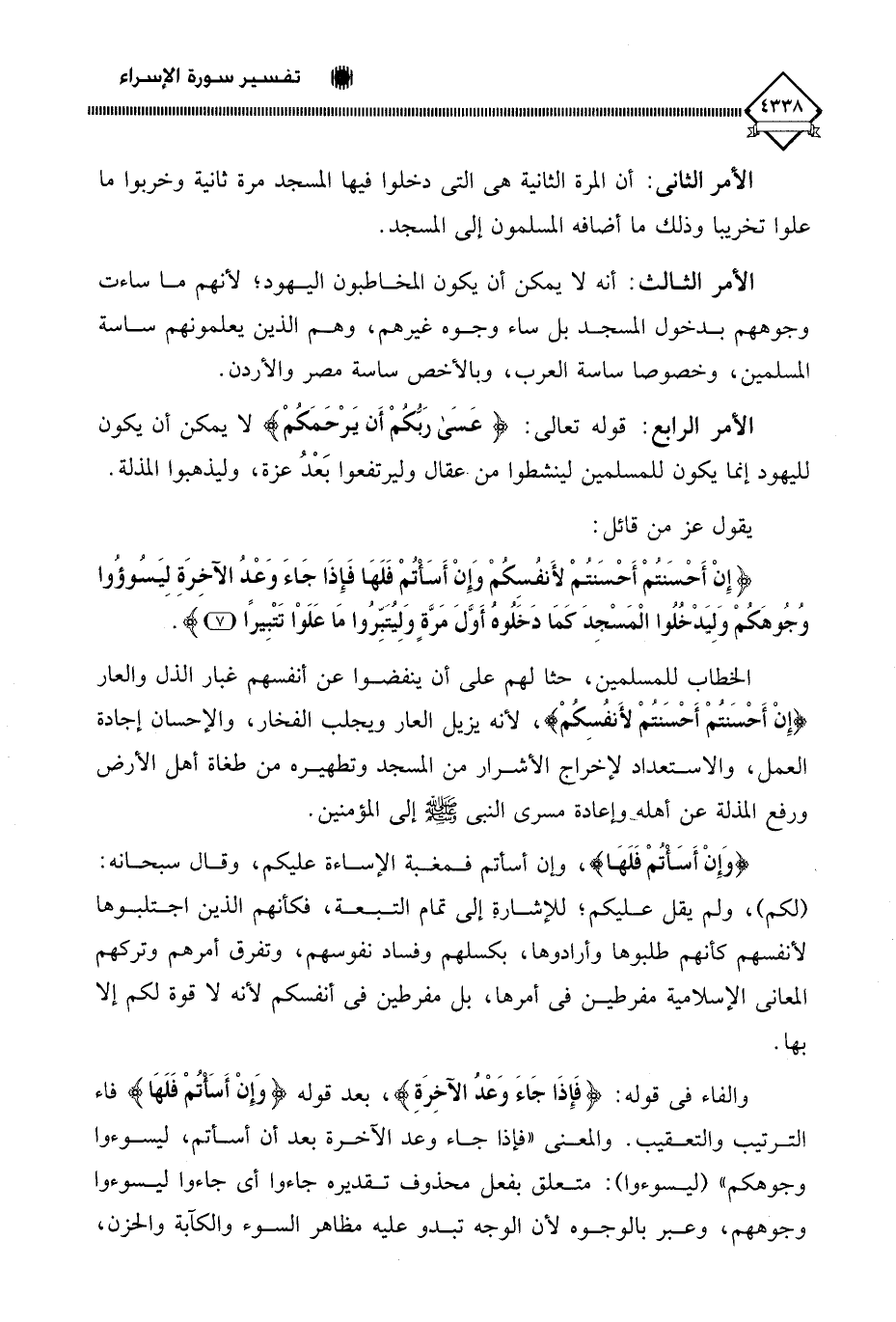 (إِنْ أَحْسَنْتُمْ أَحْسَنْتُمْ لِأَنْفُسِكُمْ وَإِنْ أَسَأْتُمْ فَلَهَا فَإِذَا جَاءَ وَعْدُ الْآخِرَةِ لِيَسُوءُوا وُجُوهَكُمْ وَلِيَدْخُلُوا الْمَسْجِدَ كَمَا دَخَلُوهُ أَوَّلَ مَرَّةٍ وَلِيُتَبِّرُوا مَا عَلَوْا تَتْبِيرًا (7)