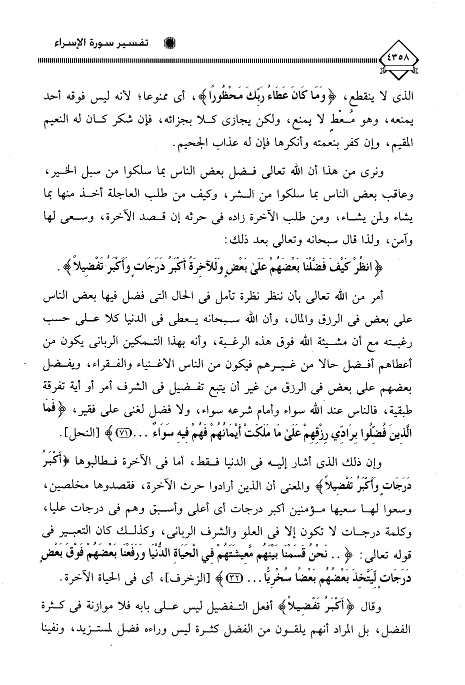 (انْظُرْ كَيْفَ فَضَّلْنَا بَعْضَهُمْ عَلَى بَعْضٍ وَلَلْآخِرَةُ أَكْبَرُ دَرَجَاتٍ وَأَكْبَرُ تَفْضِيلًا (21)